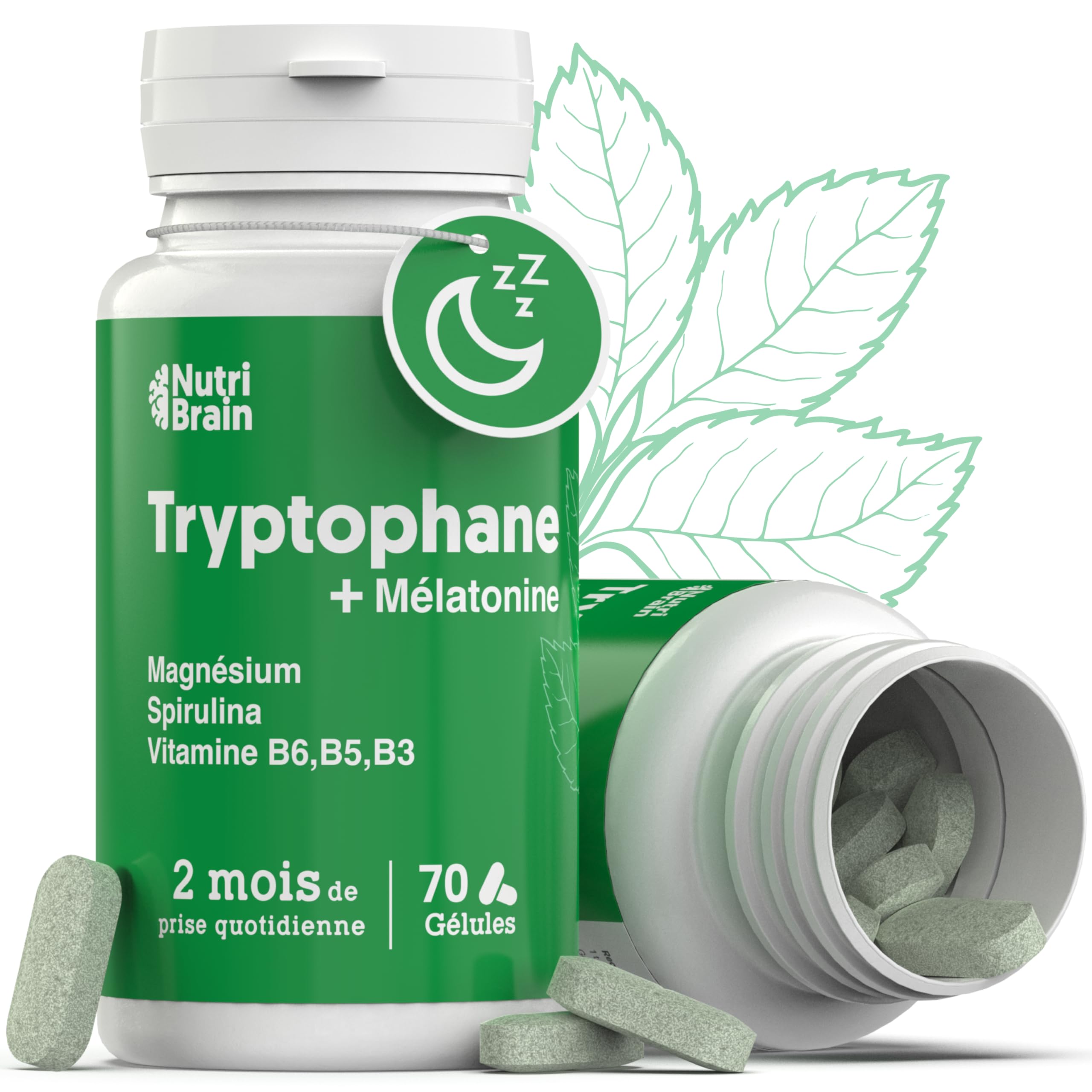 SUPPORTED BY SCIENTIFIC LITERATURE: Scientific literature shows that the Tryptophan Melatonin blend is significantly more effective than other existing natural remedies such as Valerian or Passionflower and more powerful than melatonin alone. ? ANTI-STRESS: L-tryptophan is a precursor to melatonin that regulates sleep cycles, allowing deeper sleep and helping to reduce stress levels. Food supplement for your well-being. BOOST YOUR MEMORY: Improve your memory and concentration. Serotonin also contributes to memory, memory formation and problem solving. TRANQUILITY and WELL-BEING: Increases levels of Serotonin, known as the neurotransmitter of happiness thanks to its link with tranquility and well-being, vegan product. RESTFUL SLEEP: Get a deep, restful sleep with a 100 natural remedy that will give you a boost of energy, increased concentration and a better mental state throughout the day thanks to melatonin and spirulina.SOUTENU PAR LA LITTÉRATURE SCIENTIFIQUE: La littérature scientifique montre que le mélange Tryptophane Mélatonine est significativement plus efficace que les autres remèdes naturels existants tels que la Valériane ou la Passiflore et plus puissant que la mélatonine seule. ? ANTI-STRESS: Le L-tryptophane est un précurseur de la mélatonine qui régule les cycles du sommeil, permettant un sommeil plus profond et contribuant à réduire le niveau de stress. Complément alimentaire pour votre bien-être. BOOSTER VOTRE MÉMOIRE: Améliorez votre mémoire et concentration. La sérotonine contribue également à la mémoire, à la formation de souvenirs et à la résolution de problèmes. TRANQUILITÉ et BIEN-ÊTRE: Augmente les niveaux de Sérotonine, connue comme le neurotransmetteur du bonheur grâce à son lien avec la tranquillité et le bien-être, produit végan. SOMMEIL RÉPARATEUR: Retrouvez un sommeil profond et réparateur grâce à un remède 100 naturel qui vous donnera un regain d'énergie, une concentration accrue et un meilleur état psychique tout au long de la journée grâce à la mélatonine et spiruline.