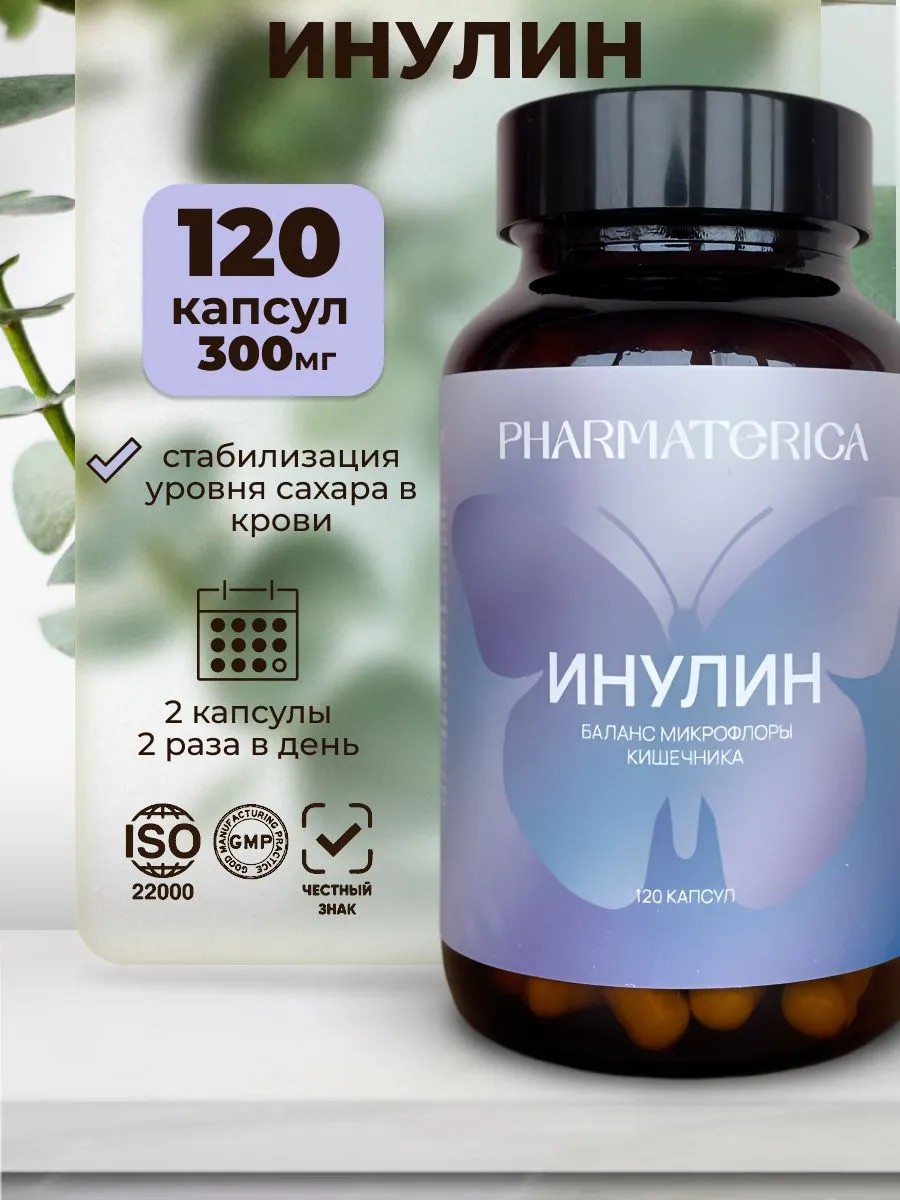 Инулин PHARMATERICA в удобной форме капсул — это простой и эффективный способ поддержать здоровье вашей пищеварительной системы и общее самочувствие.
