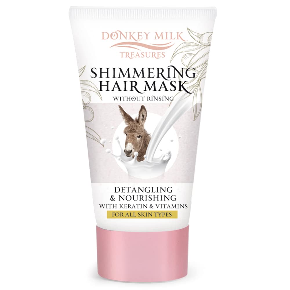 We present the glittering hair mask from Donkey Milk Treasures. Your ultimate secret for luscious, radiant hair that doesn't require rinsing. Packed with the nourishing properties of donkey milk and with mesmerizing shine, this innovative hair mask will revolutionize your hair care routine. Imagine a world where you can pamper your hair with luxurious moisture and radiant shine – all in one simple step. With the glittering hair mask from Donkey Milk Treasures this dream becomes reality. This unique formula has been developed to intensively care for your hair and provide it with important vitamins and minerals from donkey milk, which is known for its moisturizing and rejuvenating properties. When you apply the mask to your hair, you will immediately notice the wonderful texture and subtle shine it gives. The glittering particles gently attach to your hair and amplify all your movements. Whether you're attending a special event or just want to enhance your everyday look, Donkey Milk Treasures' glittering hair mask will give your hair a touch of magic. The best part? No rinsing is necessary. This innovative mask works wonders without having to wash it out. Simply apply to clean, towel-dried hair and distribute evenly from roots to ends. Then you let the mask unfold its effects, while it nourishes and revitalizes your hair all day long. It is absorbed effortlessly and leaves no residue or greess. INSTRUCTIONS FOR USE Apply the hair mask to clean, towel-dried hair and distribute it evenly from roots to ends. Let the mask unfold its effect and let it nourish and revitalize your hair all day long. It is absorbed effortlessly and leaves no residue or greess.Free from toxic dyes: we avoid toxic dyes in our system. We believe that true beauty comes from within and without and strive to offer you safe and effective products without harmful additives. Phthalate-free: we do not use phthalates in all our products. Phthalates are chemicals commonly used in cosmetics. We have decided to exclude them from our system to provide you with a safe and healthy experience. Free from DEA and Cocamides: Donkey Milk Treasures products are free from harmful ingredients such as DEA (diethanolamine) and cocamides. We strive to use only high-quality ingredients that are gentle on your skin and hair. Free from parabens: our system does not contain parabens. We want to ensure that our products are safe for daily use and respect the health of your skin and hair. 1. Not tested on animals: We are proud to say that the Donkey Milk Treasures System is completely not tested on animals. We believe in the importance of animal protection and guarantee that our products are never tested on animals.Donkey Milk Treasures Glanzend haarmasker zonder spoeling, 100 ml Wij presenteren het glinsterende haarmasker van Donkey Milk Treasures. Je ultieme geheim voor weelderig, stralend haar dat niet hoeft te worden uitgespoeld. Vol met de voedende eigenschappen van ezelmelk en met betoverende glans zal dit innovatieve haarmasker je haarverzorgingsroutine revolutioneren. Stel je een wereld voor waarin je je haar kunt verwennen met luxe vocht en stralende glans – en dat alles in één eenvoudige stap. Met het glinsterende haarmasker van Donkey Milk Treasures wordt deze droom werkelijkheid. Deze unieke formule is ontwikkeld om je haar intensief te verzorgen en het te voorzien van belangrijke vitaminen en mineralen uit ezelmelk, die bekend staat om zijn hydraterende en verjongende eigenschappen. Als je het masker op je haar aanbrengt, merk je meteen de heerlijke textuur en subtiele glans die het geeft. De glinsterende deeltjes nestelen zich zacht aan je haar en versterken al je bewegingen. Of je nu een speciaal evenement bijwoont of gewoon je dagelijkse look wilt verbeteren, het glinsterende haarmasker van Donkey Milk Treasures geeft je haar een vleugje magie. Het beste onderdeel? Spoelen is niet nodig. Dit innovatieve masker doet wonderen, zonder dat het moet worden uitgewassen. Gewoon op schoon, handdoekdroog haar aanbrengen en gelijkmatig van de aanzet tot in de punten verdelen. Vervolgens laat je het masker zijn werking ontvouwen, terwijl het je haar de hele dag door voedt en revitaliseert. Het trekt moeiteloos in en laat geen resten of vettigheid achter. GEBRUIKSAANWIJZING Smeer het haarmasker op schoon, handdoekdroog haar en verdeel het gelijkmatig van de aanzet tot in de punten. Laat het masker zijn werking ontvouwen en laat het je haar de hele dag door voeden en revitaliseren. Het trekt moeiteloos in en laat geen resten of vettigheid achter.Vrij van giftige kleurstoffen: wij vermijden giftige kleurstoffen in ons systeem. Wij geloven dat ware schoonheid van binnen en buiten komt en streven ernaar om je veilige en effectieve producten zonder schadelijke additieven aan te bieden. Ftalaatvrij: wij zien in al onze producten af van ftalaten. Ftalaten zijn chemicaliën die vaak in cosmetica worden gebruikt. Wij hebben besloten om ze uit ons systeem te sluiten om je een veilige en gezonde ervaring te bieden. Vrij van DEA en Cocamiden: de producten van Donkey Milk Treasures zijn vrij van schadelijke ingrediënten zoals DEA (diethanolamine) en cocamiden. Wij streven ernaar om alleen hoogwaardige ingrediënten te gebruiken die zacht zijn voor je huid en haar. Vrij van parabenen: ons systeem bevat geen parabenen. Wij willen ervoor zorgen dat onze producten veilig zijn voor dagelijks gebruik en de gezondheid van je huid en haar respecteren. 1. Niet getest op dieren: wij zijn er trots op te kunnen zeggen dat het Donkey Milk Treasures System volledig dierproefvrij is. Wij geloven in het belang van dierenbescherming en garanderen dat onze producten nooit op dieren worden getest.