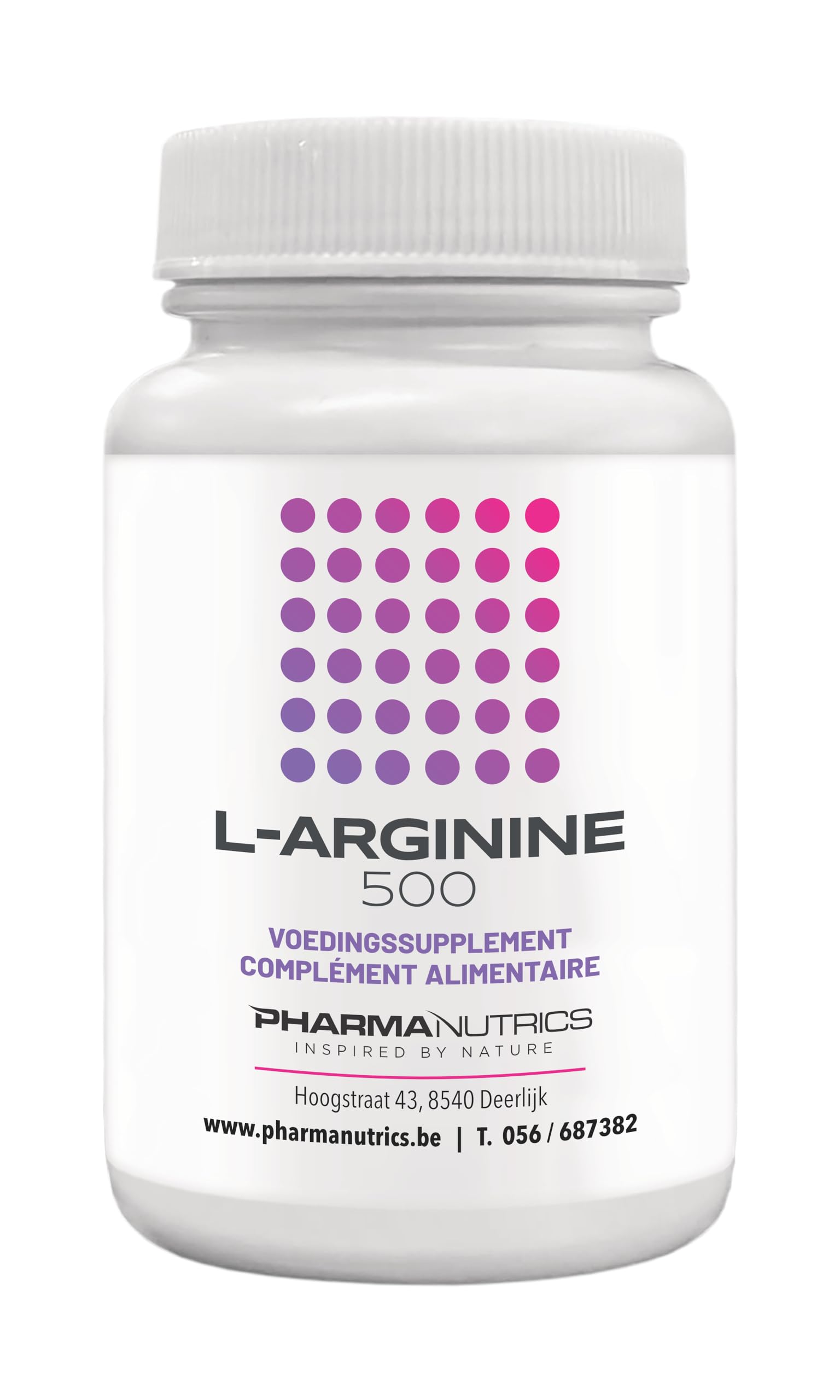 DESCRIPTION DU PRODUIT L-arginine 522,8 mg Hulpstoffen: Silicium Dioxyde, Magnesiumzouten van vetzuren, gelatine "BOOST JE LIBIDO EN VERBETER JE ALGEHELE GEZONDHEID MET PHARMANUTRICS L-ARGININE 500! ONTDEK DE KRACHT VAN DIT NATUURLIJKE SUPPLEMENT DAT SPECIAAL IS ONTWORPEN OM JE SEKSUELE VITALITEIT TE STIMULEREN EN JE WELZIJN TE BEVORDEREN. L-Arginine is een essentieel aminozuur dat een cruciale rol speelt in het stimuleren van de bloedtoevoer naar de geslachtsorganen, wat resulteert in een verhoogde seksuele respons en libido. Onze L-Arginine 500-formule biedt een optimale dosering van dit aminozuur, waardoor je snel en effectief kunt profiteren van de voordelen. Naast het verbeteren van je seksuele gezondheid, heeft L-Arginine ook tal van andere voordelen voor je algehele welzijn. Het ondersteunt een gezonde bloeddruk, versterkt het immuunsysteem en bevordert een gezonde hartfunctie. Bovendien kan het helpen bij het verbeteren van de fysieke prestaties, waardoor het een waardevolle aanvulling is voor zowel sporters als mensen die actief willen blijven. Kies voor Pharmanutrics L-Arginine 500 en ervaar de voordelen van dit krachtige supplement voor jezelf. Verbeter je libido, verhoog je energie en voel je weer vitaal en vol leven. Bestel nu en neem de eerste stap naar een gezonder en gelukkiger leven!"
