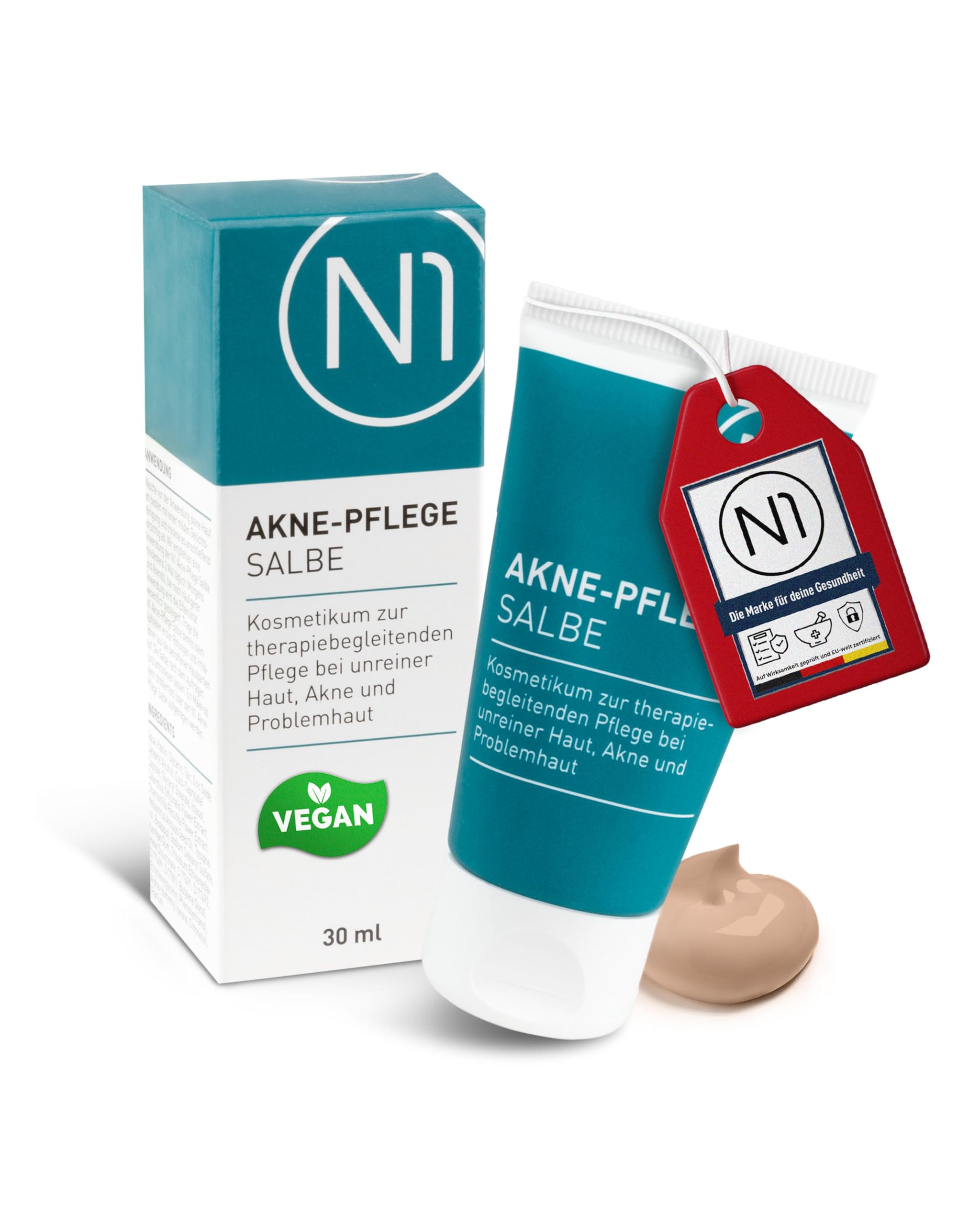 ✓ High quality in Germany in strictly tested and certified installations. Independently laboratory tested for effectiveness and dermatological compatibility. Courageous and supple skin: the included kaolin binds excess skin sebum, while the flower extracts of Chamomilla Recutita and Calendula Officinalis prevent skin irritations. Very suitable for sensitive skin: the active ingredients zinc oxide and bisobolol soothe irritated skin and at the same time protect it from drying out. No redness or overreactions are to be expected. For your skin, skin and professional skin: the active ingredient Ichthhol PALE for an antibacterial effect, refines the skin image and helps prevent the formation of new impurities.N1 Acne verzorgende zalf 30 ml - getinte puistjescrème - antibacterieel, verfijnt het huidbeeld, ook voor de gevoelige huid - acne crème gezicht en acne✓ Hoogwaardig in Duitsland in streng geteste en gecertificeerde installaties. Onafhankelijk laboratoriumgetest op werking en dermatologische compatibiliteit. Moedig en ebenig huid: de meegeleverde kaoline bindt overtollige huidtalg, terwijl de bloemenextracten van de Chamomilla Recutita en Calendula Officinalis huidirritaties voorkomen. Zeer geschikt voor een gevoelige huid: de werkzame stoffen zinkoxide en bisobolol kalmeren de geïrriteerde huid en beschermen deze tegelijkertijd tegen uitdrogen. Er zijn geen roodheid en overreacties te verwachten. Voor je huid, huid en professionele huid: de werkzame stof Ichthhol PALE voor een antibacteriële werking, verfijnt het huidbeeld en helpt de vorming van nieuwe onzuiverheden te voorkomen.