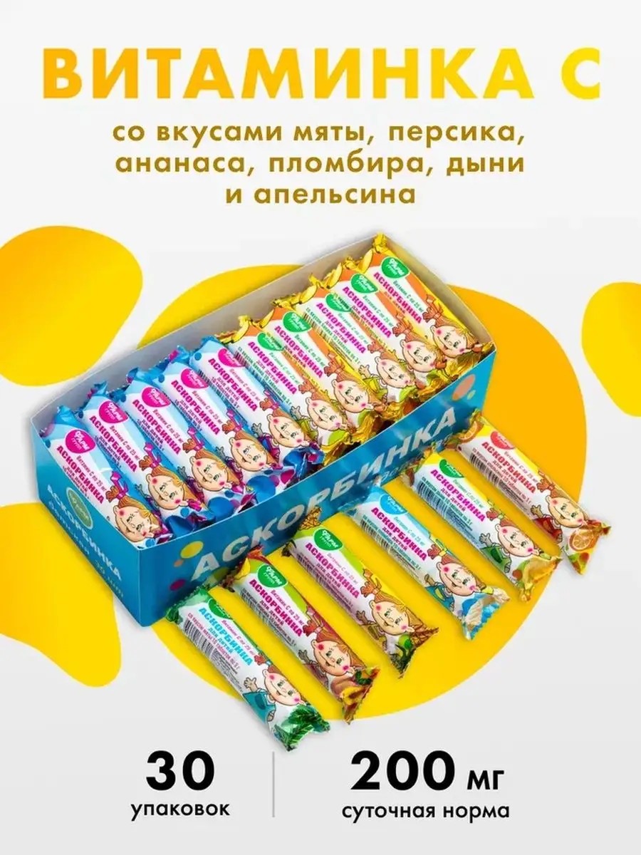 Аскорбинка для детей, разные вкусы ассорти №30 Витамин С