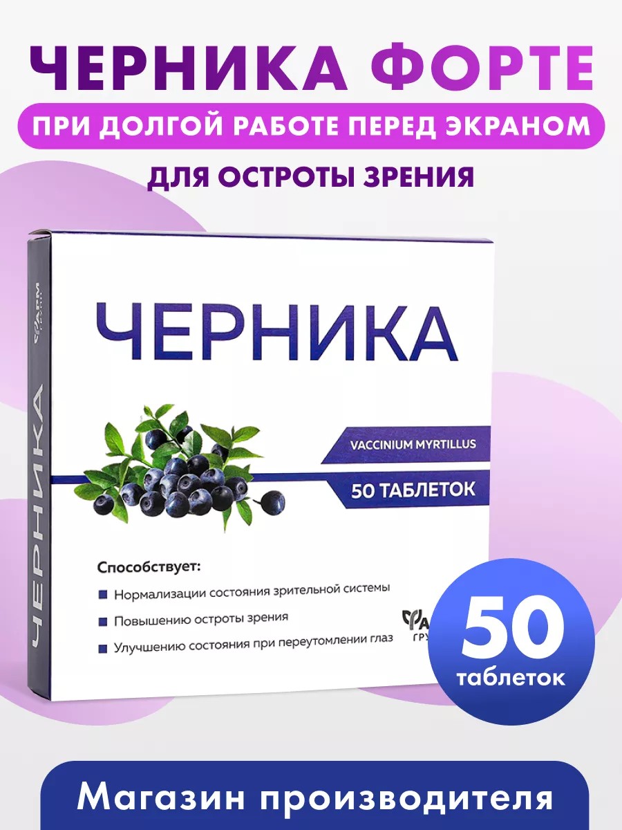 | Комплектация | 50 шт - таблетки черника, для остроты зрения, черника; черника - 50 таблеток; витамины для глаз - 50 таблеток; бад для глаз черника - 50 шт. |