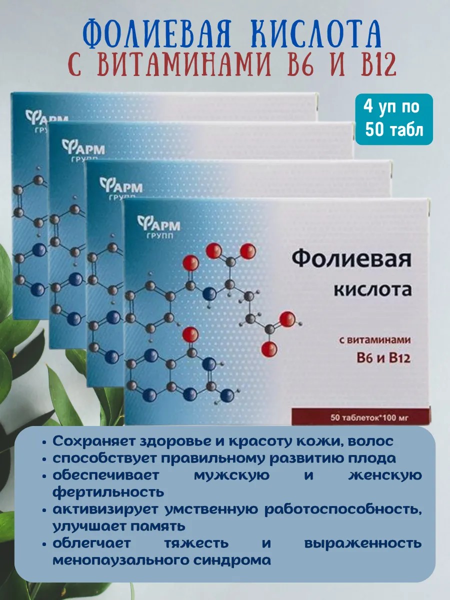 Фолиевая кислота с витаминами В6 и В12 4 уп по 50 табл