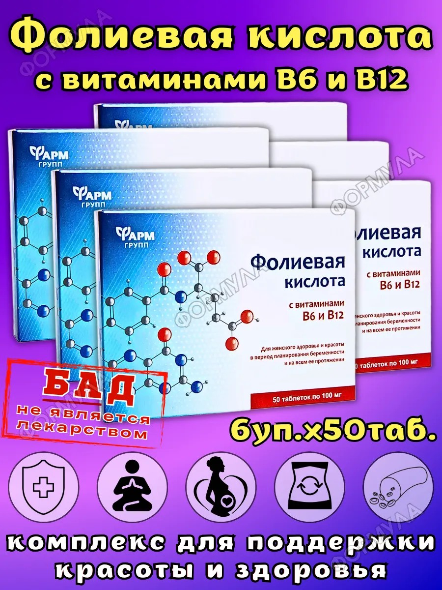 | Полное наименование товара | Фолиевая кислота с витаминами в 6 и в 12 50 шт. таблетки массой 100 мг |