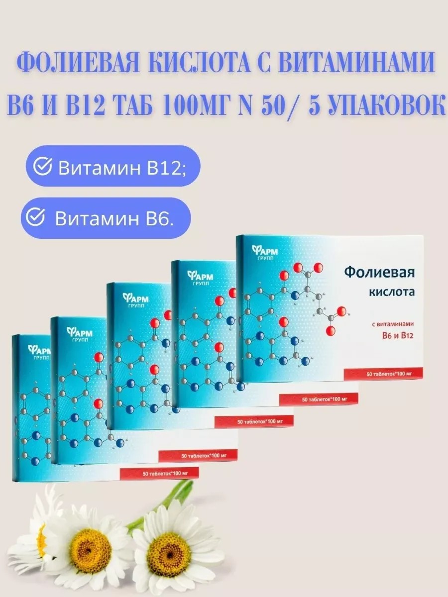 ФармГрупп Фолиевая кислота с витаминами В6 и В12 таб 100мг 50 шт-50 уп