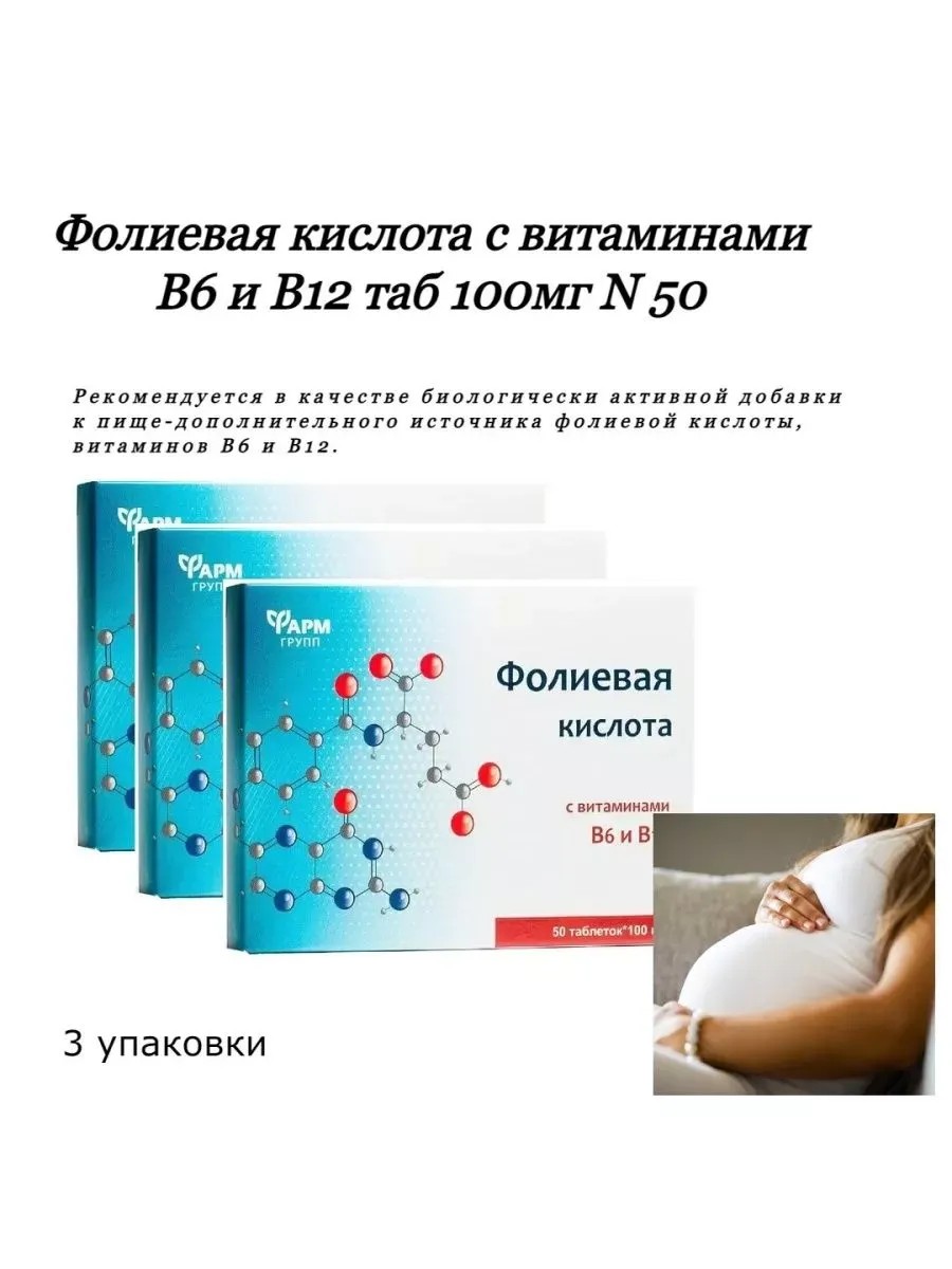 ФармГрупп Фолиевая кислота с витаминами В6 В12 таб 50 100мг -4 шт.