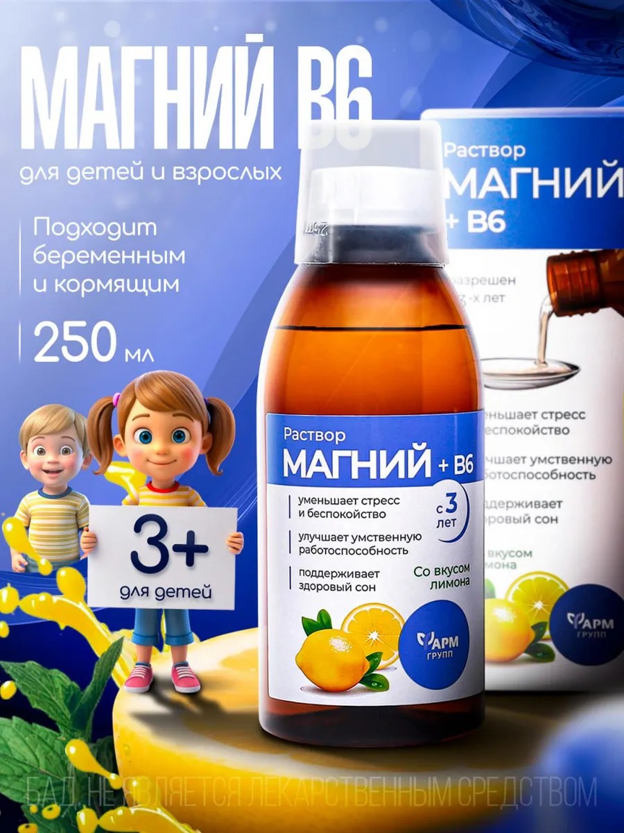 | Комплектация | Флакон - 250 мл.; Витамины для мужчин, витамины для женщин, витамины для детей, витамины для взрослых; Магний + B6; магний в6 - 250 мл |