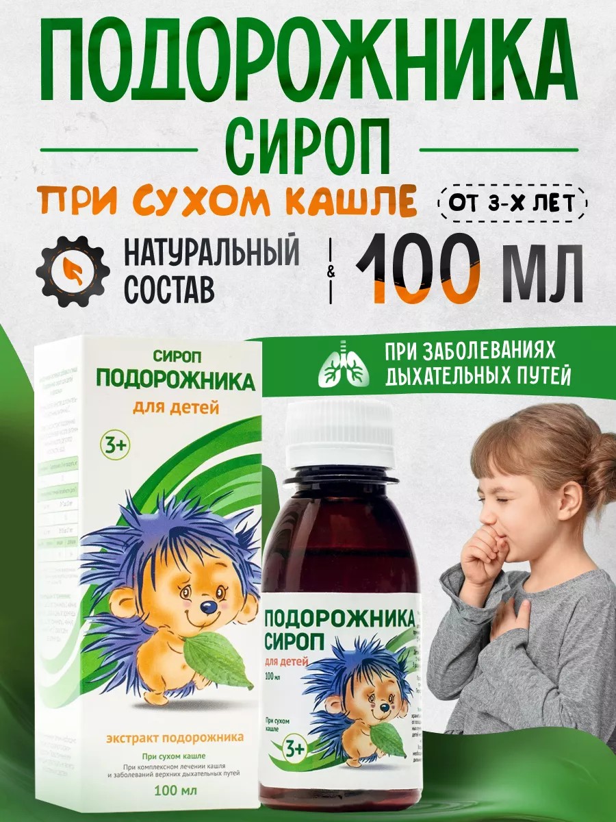 Plantain syrup for the complex treatment of cough, upper respiratory tract diseases, and dry cough. The syrup contains plantain extract. For children aged 3 years and over. Ingredients: sugar, water, plantain leaf, ascorbic acid (vitamin C), citric acid (acidity regulator).