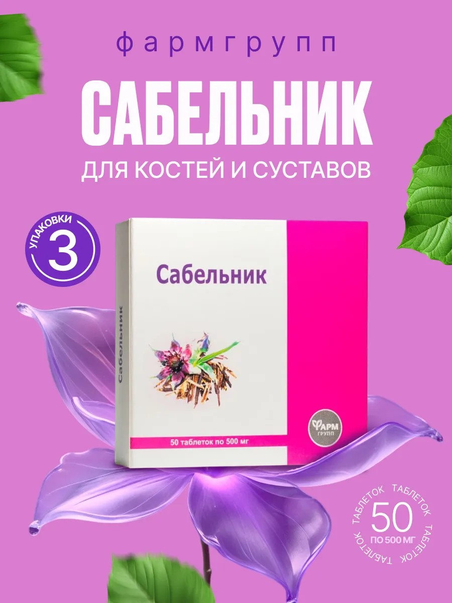 Сабельник Источник флавоноидов, пищевых волокон, содержит дубильные вещества, инулин, катехины. Способствует улучшению опорно-двигательного аппарата. Состав: целлюлоза микрокристаллическая, сабельник болотный, корень, лопух большой, корень, тальк молотый. Рекомендации по применению: взрослым по 3 таблетки 3 раза в день во время еды, запивая большим количеством воды. Продолжительность приема: 1 месяц. Условия хранения: хранить в сухом, защищенном от света, недоступном для детей месте, при температуре не выше 25оС. Срок годности: 2 года.