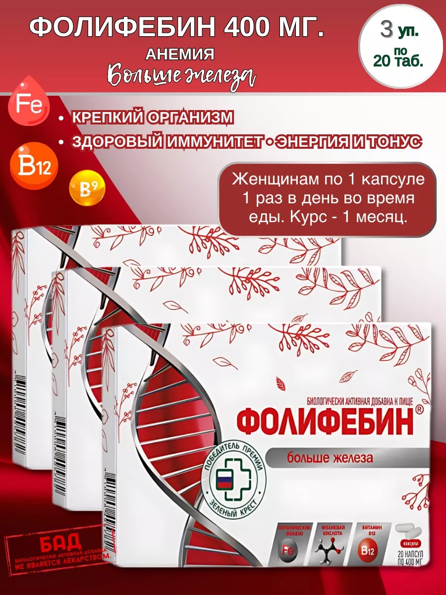 | Торговое наименование | биологически активная добавка к пище "Фолифебин" (капсулы по 400 мг) |
