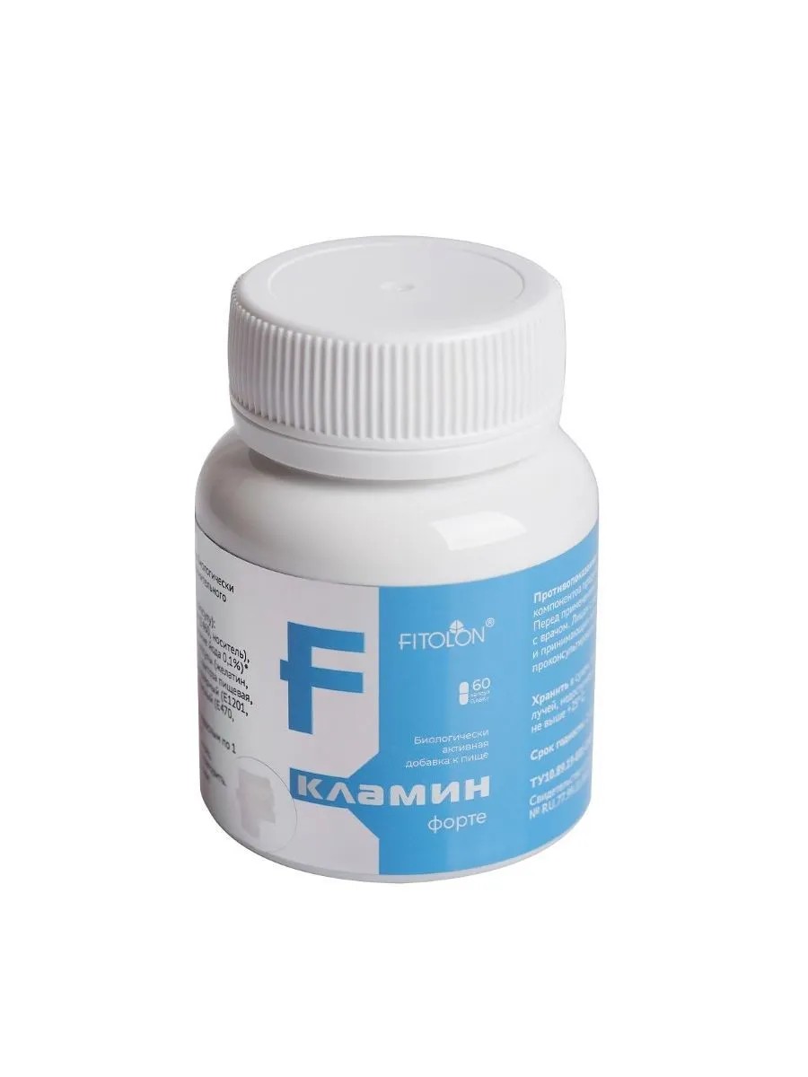 | Торговое наименование | биологически активная добавка к пище "КЛАМИН ФОРТЕ®" (таблетки массой 0,37 г, капсулы массой 0,466 г) |