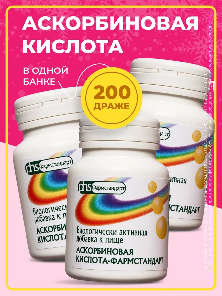 | Комплектация | Аскорбиновая кислота 50 мг 3 упаковки по 200 шт. драже |