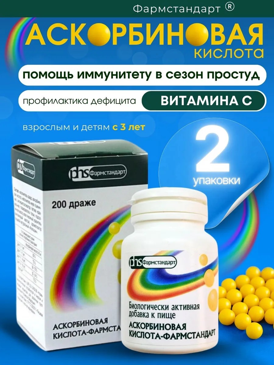 | Торговое наименование | биологически активная добавка к пище Аскорбиновая кислота-ФАРМСТАНДАРТ (драже массой 0,25 г) |