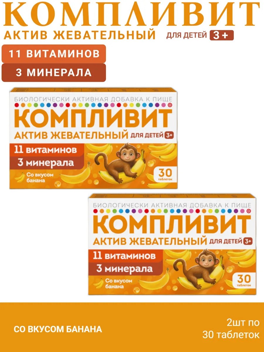 Компливит Актив витамины для детей 3+ 30 таб 2 шт