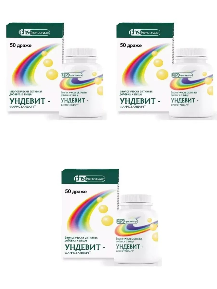 UNDEVIT-PHARMSTANDARD N50 DRAGEES 1000 MG Undevit is a vitamin complex for health. Yellowing of urine may occur due to the presence of riboflavin. 50 1.0 g dragees with instructions for use in a pack. Allergic reactions are possible. Undevit-pharmstandard 50 dragees is a complex preparation containing 11 essential vitamins and 4 microelements necessary for the normal functioning of the body. Each dragee contains 1000 mg of active ingredients, providing complete nutrition and strengthening the immune system. This preparation is recommended for the prevention and treatment of vitamin and mineral deficiencies, as well as for increasing vitality and promoting overall health. The dragees have a pleasant taste and do not cause discomfort when taken. The product is suitable for people of all ages and can be used both as a basic nutritional supplement and as an additional source of nutrients during periods of increased physical and emotional stress.
