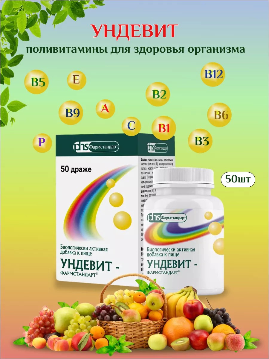 | Торговое наименование | биологически активная добавка к пище "УНДЕВИТ - ФАРМСТАНДАРТ®" (драже массой 1000 мг) |