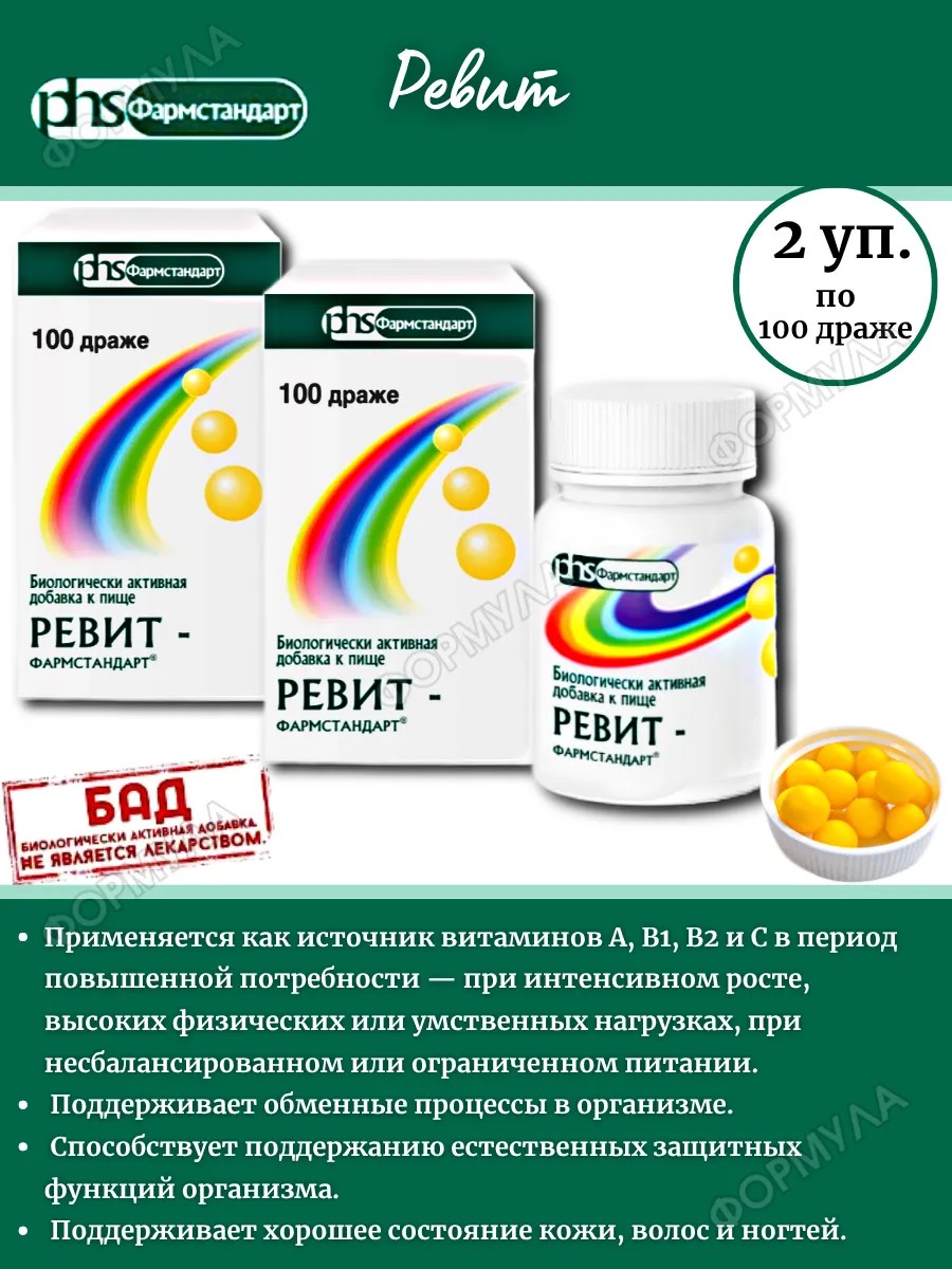 | Package | REVIT-PHARMSTANDART N100 DRAGEES 0.5 G * 2 pack |