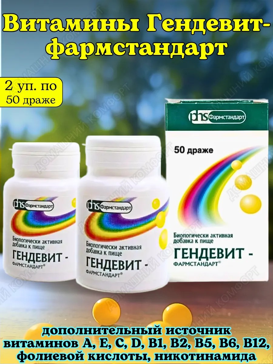 | Полное наименование товара | Гендевит-фармстандарт 50 шт. драже массой 1000 мг |