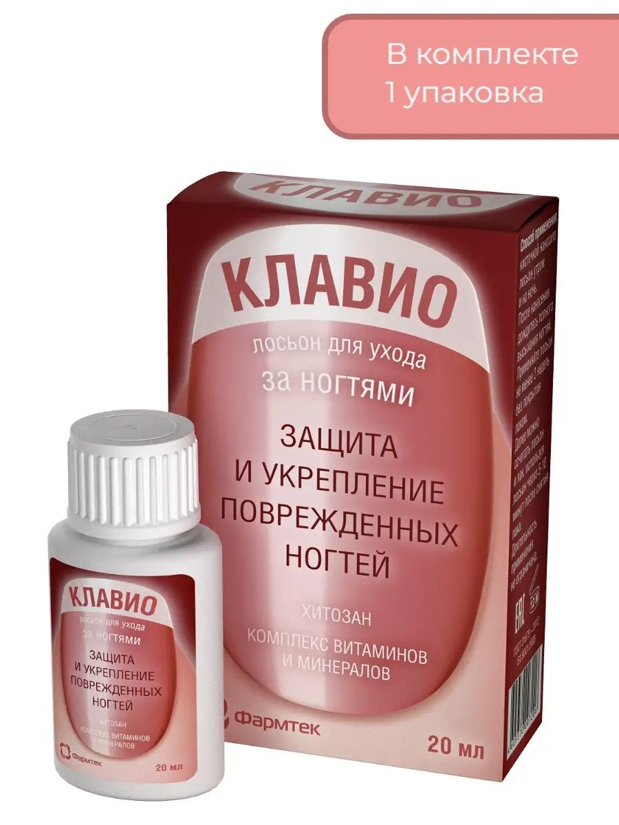 | Комплектация | Клавио лосьон для ухода за ногтями 20мл |