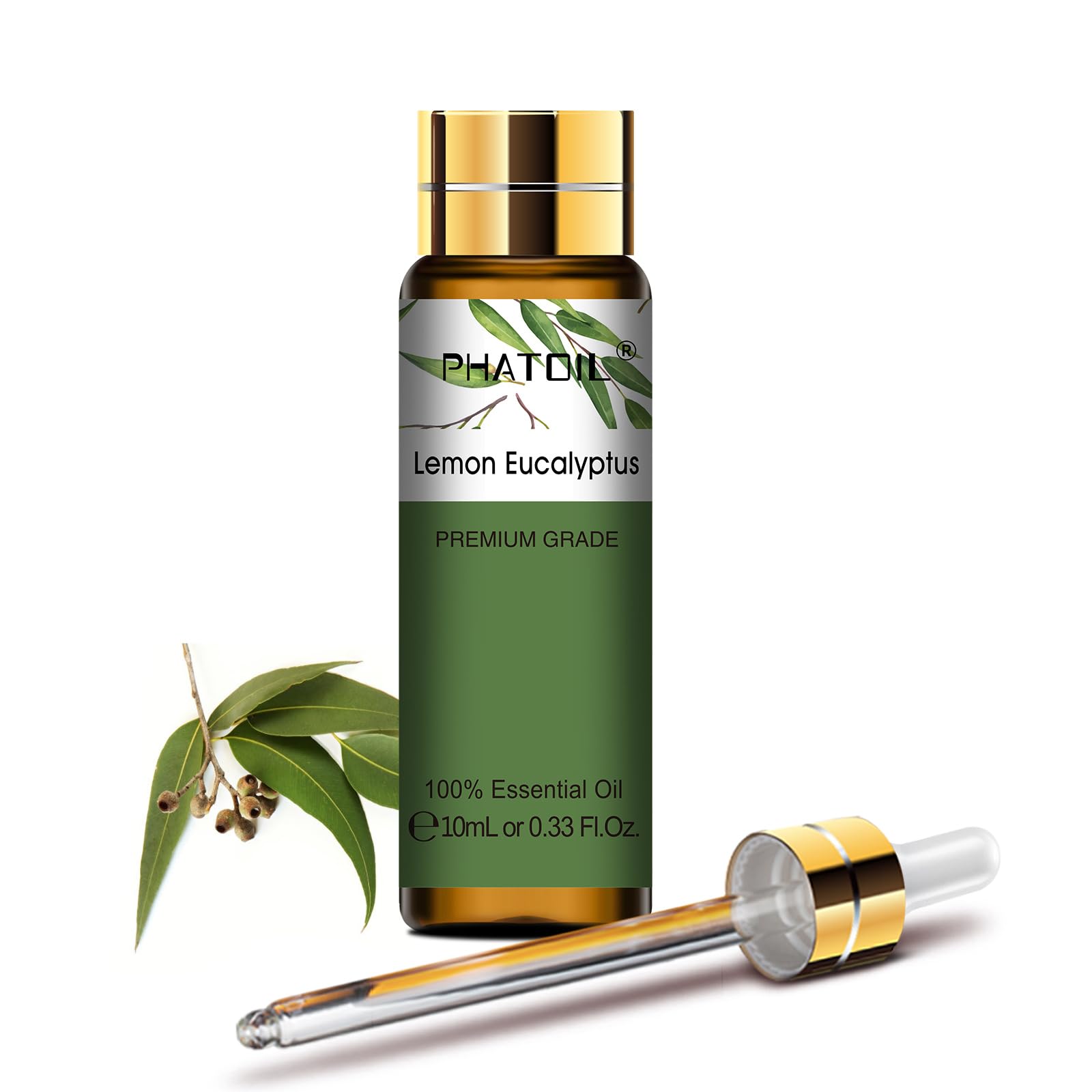 Specification: Fragrance: Lemon Eucalyptus Volume:10ml Item feature: Pure plant extract essential oil. No additive, no fillers, just pure essential oil. Each essential oil comes with an amber brown bottle. This will keep the oils fresh and help against light degradation. Comes with a beautiful box, wonderful essential oils gift option, which is fashion enough and would be wonderful to send it to family or friends. How Best To Use These Oils: There are many ways to use our essential oils, here are just a few. Diffusers - One of the most popular ways is using them with an diffuser. Adding a few drops to your aromatherapy diffuser will create a lasting lovely smell, you can also mix oils to create your own smell. Making your own - Many of you like create your own soaps, candles and beauty products, and these oils are perfect for that. They are of premium grade, natural, and pure, making them ideal for people who with creative souls. Others - Other popular ways apart from the above include, oil burners, and spas saunas and so more Reminder: For external use only. Keep tightly sealed. Store in a cool, dry place. Avoid contact with eyes. Keep out of reach of children. If pregnant or nursing, consult your doctor before use. Package includes: 1 x PHATOIL Lemon Eucalyptus Essential Oil (With a beautiful box) 1 x DropperConfident Purchase: PHATOIL is dedicated to bringing you safe, natural products that are good for your family and the environment. If for any reason you have any issues please contact us for a free replacement or refund. Widely Use: High-quality essential oils is suitable for yoga room, wardrobes, bedrooms, study rooms, offices, cars and more. PHATOIL Essential oils are ubiquitous in our daily lives. Premium Grade Diffuser Oil: Just add a few drops to any aromatherapy diffuser (steam or reed) and fill your entire room with that lovely smell. After the natural aromatic essential oil enters the brain, it can make the spirit present a comfortable state. Wonderful Scent: PHATOIL essential oils are highly concentrated liquid derived from plants' flowers, leaves or other parts, which will provide you with a pure and pleasant aroma. The scents of essential oils are extremely rich, complex and long lasting. Premium Aromatherapy Oil: Our Lemon Eucalyptus essential oil is pure, undiluted, no additives, and never tested on animals. Bottled in an amber 10ML glass bottle with a built-in dropper for easy pouring and application.