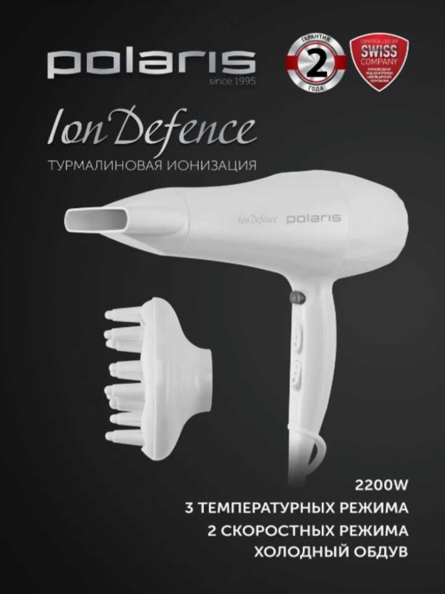 Фен Polaris PHD 2250TDi с элегантным белым цветом корпуса – полноразмерная модель, обладающая эргономичной формой и солидной мощностью 2200 Вт. Прибор стал обладателем прорезиненной ручки с приятным на ощупь покрытием Soft Touch, благодаря которому обеспечивается уверенный хват даже влажной рукой. Снять с волос статическое электричество, а также придать им здоровый и естественный блеск поможет турмалиновая ионизация и встроенный генератор ионов. Ионизация также защищает локоны от пересушивания и обезвоживания, что позволит пользоваться феном каждый день без вреда для волос.