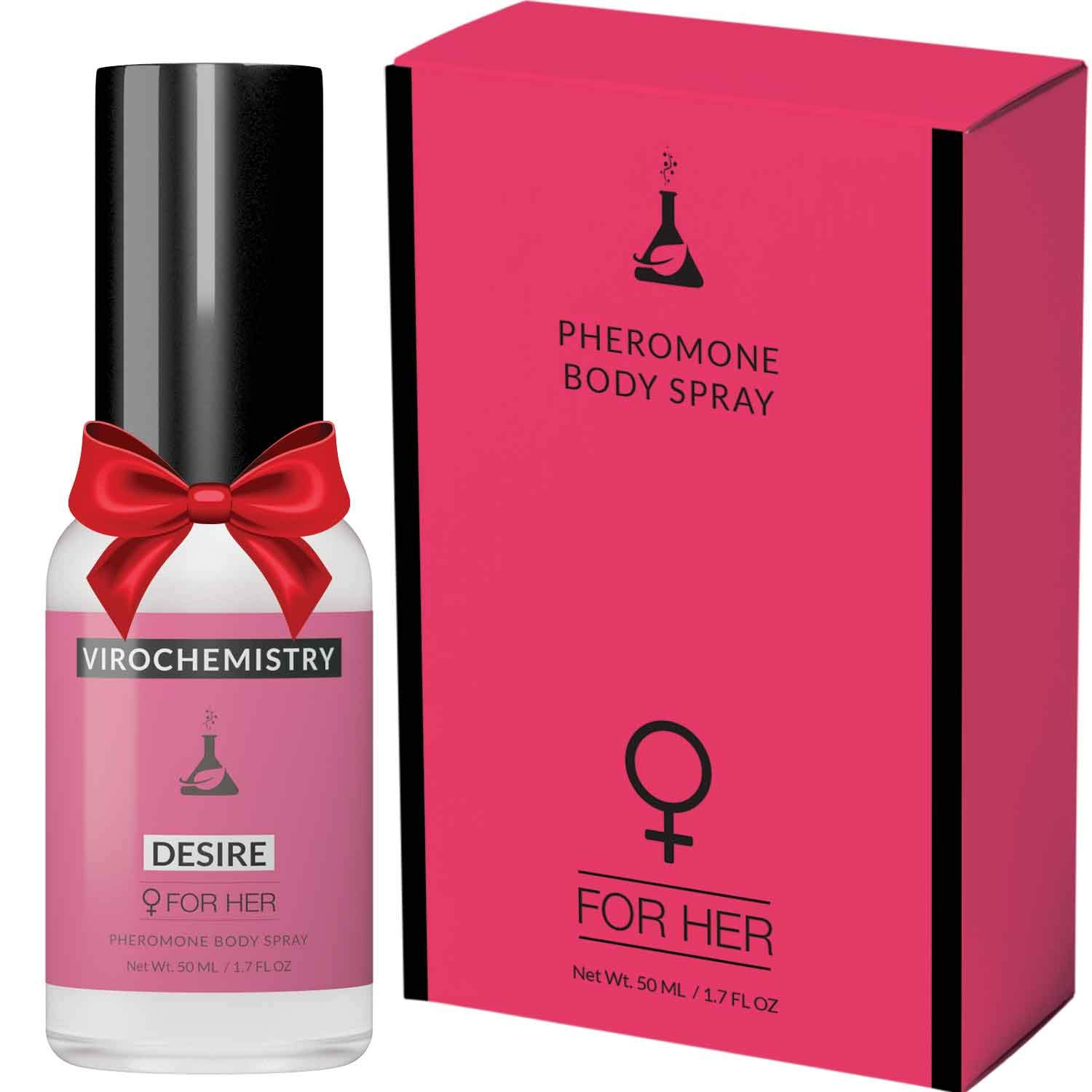 The Most Amazingly Effective and Fantastic Smelling Women Pheromone Body Spray with Human Pheromones Available Anywhere, Hands Down. “Desire” – A Uniquely Blended Scent with Hints of Bergamot, Tea, Jasmine, Orchid, Centiflora Rose, and Patchouli. ViroChemistry Pheromone Body Spray for Women utilizes a formula proven in our Los Angeles based laboratory to not only have an enticing scent but was also designed to specifically target a Man's attraction receptors within his brain. Give yourself an edge in any situation with our Pheromones. - Extra Strength Concentration of Human Grade Pheromones - Formula includes the Most Effective Scents and Oils - Silky Smooth, Moisturizing Blend to Increase Pheromones Absorption - Long Lasting Effect and Scent - One of The Best Scented Perfumes for Women to be Tested - The #1 Pheromone Blended Body Spray Available - Lab Proven Blend of Pheromones to Attract Men. All of ViroChemistry's Pheromone products are ALCOHOL FREE and use a proprietary blend of natural oils and human grade pheromones to protect your skin while allowing for a long lasting, amazing scent. Not totally satisfied? No problem, we'll refund your money 100%. Guaranteed. No risk to you. If you want to have the competitive edge in those important social situations, then this is the most important Pheromone Body Spray you will ever purchase. So don’t wait, click Add to Cart now and change your life!