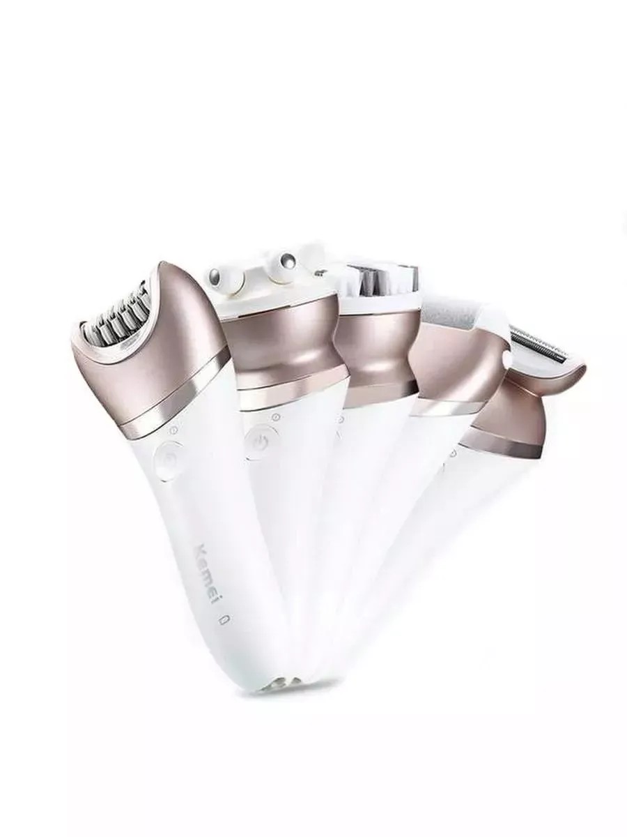 The KM-8001 epilator features the best exfoliation and massage system. This ensures smooth, hair-free skin with virtually no pain during treatment. The cordless design ensures comfort and eliminates the need for electrical outlets. The epilator provides up to 120 minutes of continuous use on a single charge. A power adapter is included for recharging the battery. A cleaning brush is also included. The epilator features two operating modes and a backlight, allowing you to adjust the speed of the heads, reducing pain. This model features an ergonomic body, smooth contours, and a special anti-slip surface. The KM-8001 electric epilator, with its 5 functions in 1, provides comfortable and pain-free skin care for daily use! Features: - This is a multifunctional device with 1 epilation head, 1 shaving head, 1 facial cleansing brush, 1 massage head and 1 callus removal head to meet different requirements. - Designed to fit the contours of your body and remove even the finest hair from legs, face, underarms, bikini line and other sensitive areas in a short time. - Ensures that you always use the device with optimal power without the cord, and the intelligent light design is convenient for precise epilation. - 2-speed operation for different hair types (fine or coarse hair). This multifunctional professional epilator will be a great gift for any occasion, including New Year, birthday, March 8, February 14 and so on, to your woman, mother, sister, aunt, girlfriend.