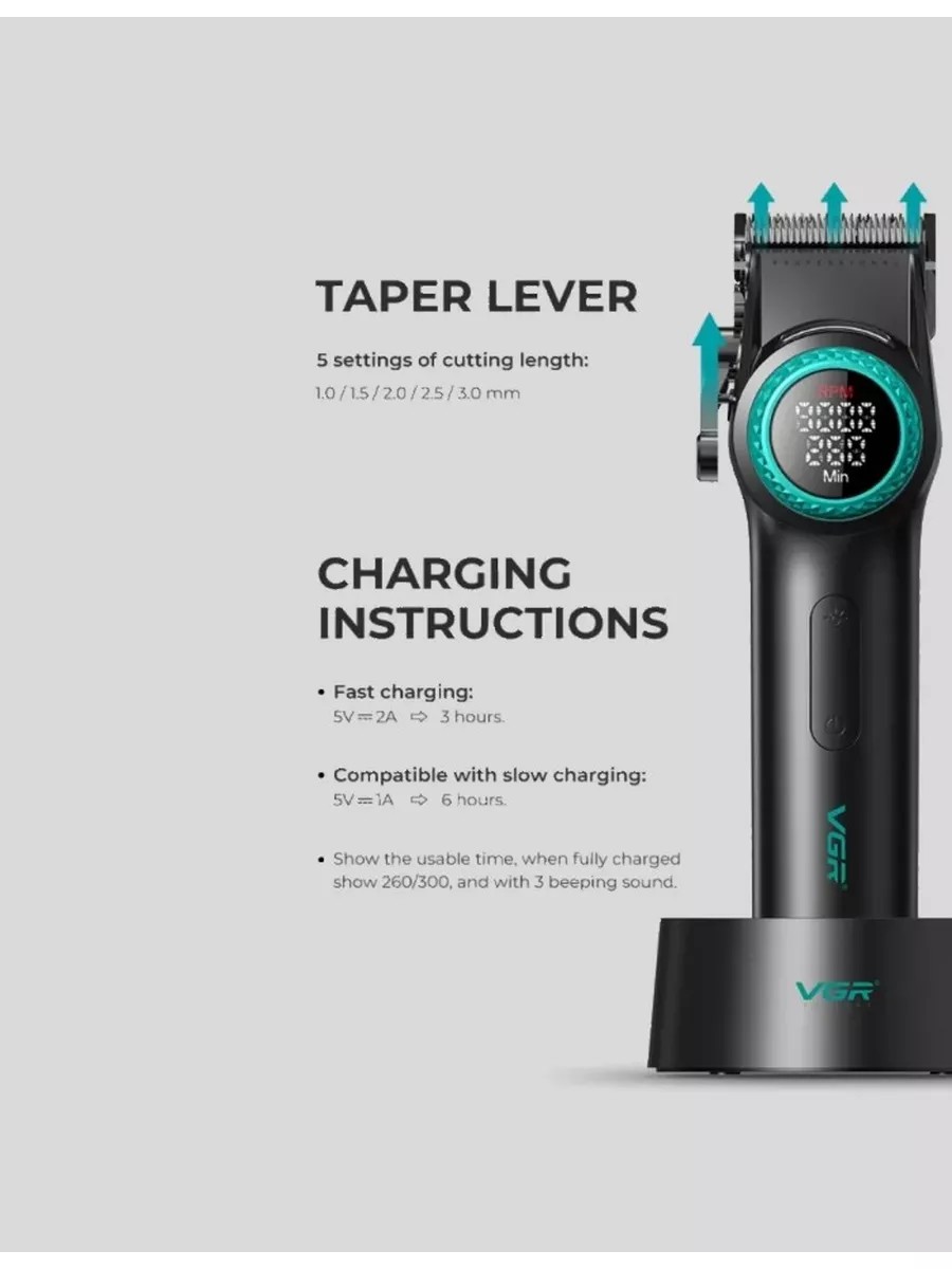 A hair clipper is a professional hairdressing tool that allows you to quickly and easily create perfect hairstyles. It is equipped with sharp blades that ensure a clean, even cut. Thanks to its special attachments, the clipper can be used for both hair and beard trimming. Its cordless function allows for freedom of movement while working, and the various attachments allow for a variety of hairstyles and ensure ease of use. The VGR professional hair clipper boasts high power and a long service life, making it an indispensable tool for barbers and stylists. It can also be used at home to create the perfect look anytime. The VGR hair clipper is a reliable assistant in creating a stylish and well-groomed look.