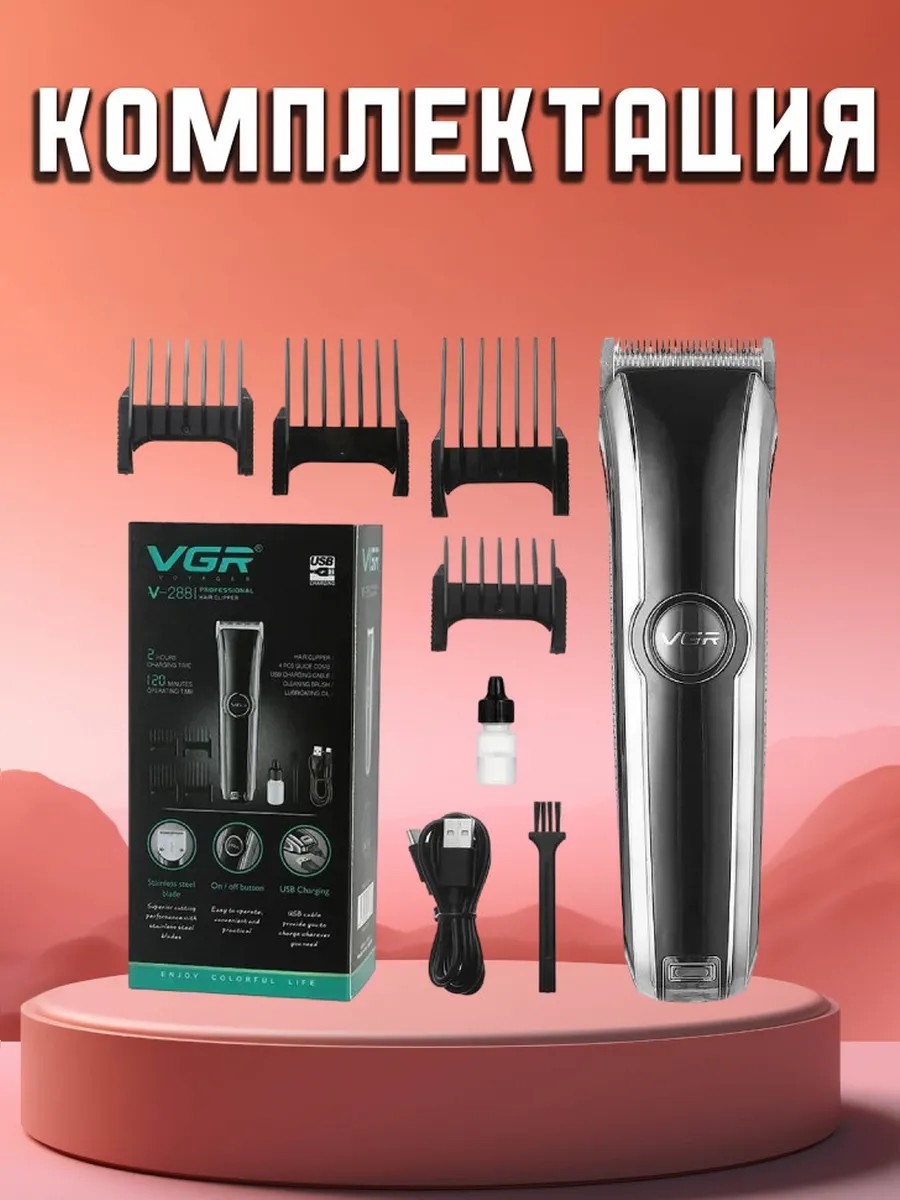 We present to you a hair clipper. This device is moisture-resistant. All components are housed in a sealed housing that prevents water from getting inside. The trimmer and attachments can be washed under regular running water, after cleaning them with the included brush. The powerful battery provides up to 90 minutes of use on a single charge. The time remaining until the next charge is displayed in minutes on a convenient digital display. Charging is wireless, and a USB cable for charging from a laptop or computer is also included. The device fully charges in just an hour and a half. You can stop the process with a gentle press of the corresponding icon on the display. Thanks to the powerful and capacious battery, you can easily take this trimmer with you on trips and travels. Also included are 4 attachment combs (3 mm, 6 mm, 9 mm, and 12 mm). Treat your man to a high-quality clipper. The professional VGR V-288 hair clipper from the VGR salon line. Powerful rotary motor with increased torque. VGR V-288 has stainless steel blades. This material is characterized by high hardness and durability, which allows the clipper to cope with the thickest and coarse hair. Stylish portable VGR clipper is equipped with innovative built-in Li-Ion battery. You can perform haircuts both autonomously and from the mains. Increased battery life up to 2 hours. Specifications: Stainless steel blades; Wet cleaning of the cutting head; Low noise level; Power 5V; Lithium battery 1200 mAh; Long battery life of 120 minutes; Full charge time only 2 hours; Possibility of operation from a network of 100 - 240 V, 50/60 Hz; Rotary motor. Package contents VGR V-288 hair clipper; USB charging cable; Attachments 3, 6, 9, 12 mm; Cleaning brush; Technical oil, gift box.