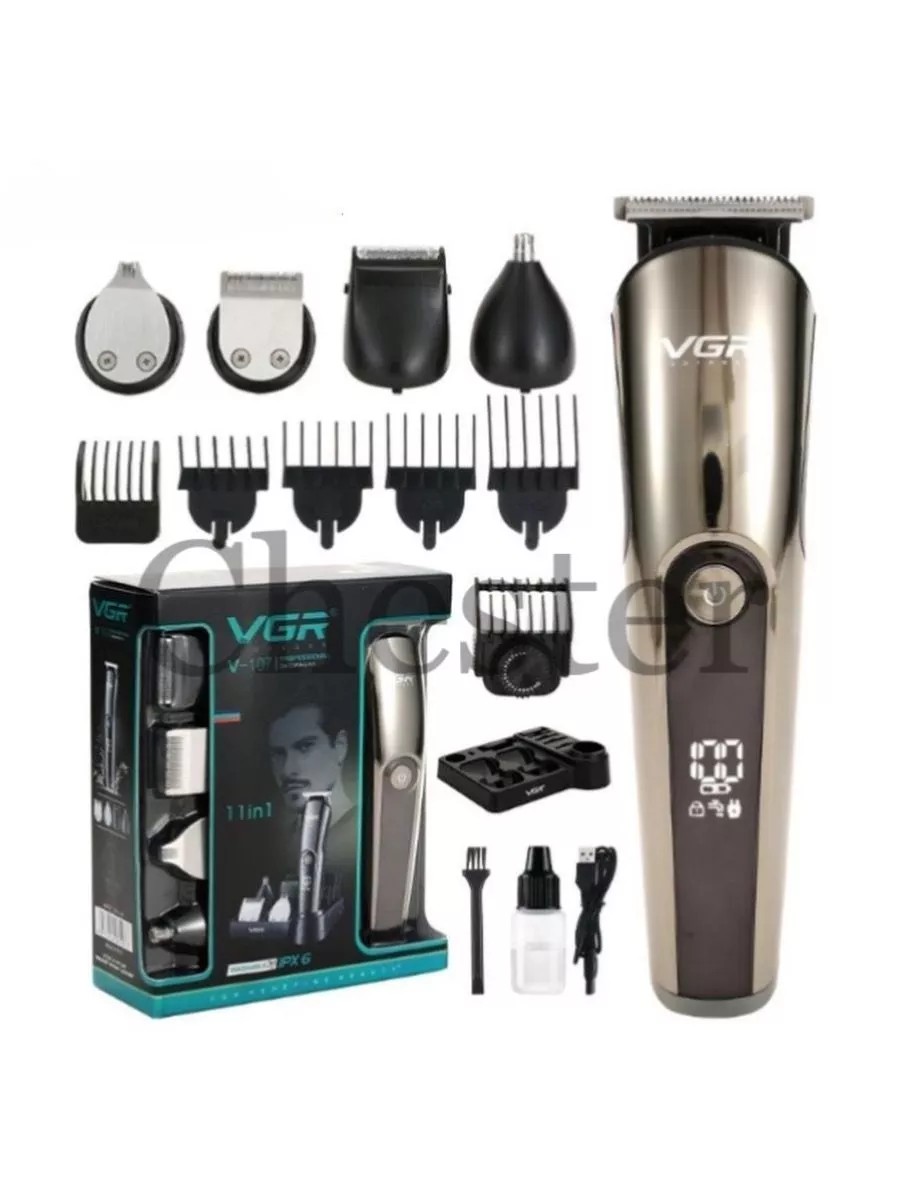 Многофункциональная машинка V.G.R. V-1. 0. 7 для стрижки волос. Сочетает в себе несколько устройств: - Профессиональная машинка для стрижки волос с четырьмя насадками от 3 до 12 миллиметров - Триммер с узкими ножами для художественного бритья - Триммер для ушей и носа - Насадка, которая превращает машинку в сеточную бритву с головкой на 3-4,5 мм В многофункциональной бритве используются качественные ножи из нержавеющей стали для долгой и надежной работы. Они справятся с жесткими и густыми волосами. Машинка для стрижки волос работает на аккумуляторе. Он заряжается от USB в течение 2 часов до полного заряда. Одного заряда триммера хватает на 150 минут беспрерывной работы. Кабель USB идет в комплекте. Несмотря на большую мощность мотора, работает машинка для волос с очень низким уровнем шума. Многофункциональное устройство VGR V-107 - прекрасный набор для стайлинга. С помощью него вы можете постричь волосы, сделать окантовку, придать форму бороде. А также удалить волосы из носа и ушей.Характеристика:- Водонепроницаемый: степень влагозащиты IPX6- Длительная работа- Ножи из нержавеющей стали- Индикатор зарядки аккумулятора- Аккумулятор: литиевая батарея 1400 mAh- LED-дисплей- Быстрая зарядка- Время зарядки: 2 часа- Время работы: 150 минут- Ширина лезвия: 40 мм- насадки-10 шт (0,5-12 мм)- Работа: без шнура- Способ питания: USB зарядка- Малый вес и габариты– Легко ложится даже в небольшую ладонь- Долговечный и высокопроизводительный- Минимальная высота среза 0.5 мм V.G.R один из лучших аналогов известных брендов таких как Philips, Panasonic, Xiaomi, Rowenta, Remington, Braun.VGR один из лучших аналогов известных брендов таких как Philips, Panasonic, Braun, Remington, Moser, Rowenta, Xiaomi, Samsung который не уступает в качестве, по доступной цене. Использование бренда исключительно для поиска
