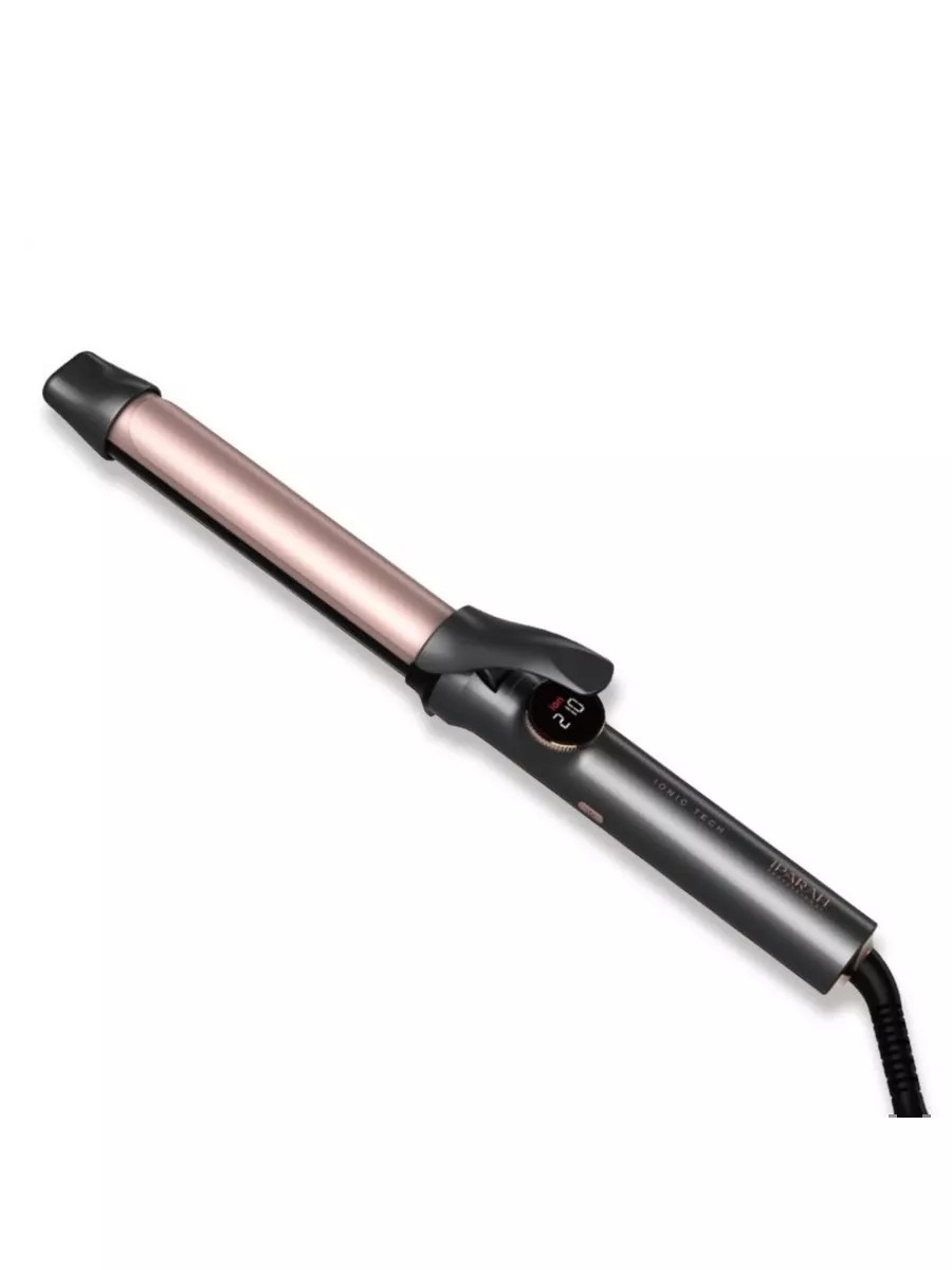 The curling iron diameter is 28 mm. The P-205 curling iron features ceramic-coated plates, an LED display, and ionization. This curling iron allows you to create beautiful curls. The temperature is adjustable from 120 to 230 degrees. This professional nano-titanium hair straightener comes with hair oil and two plastic clips that prevent creases. The curling iron has a power of 70 watts. It automatically shuts off after 30 minutes. The cable rotates 360 degrees.