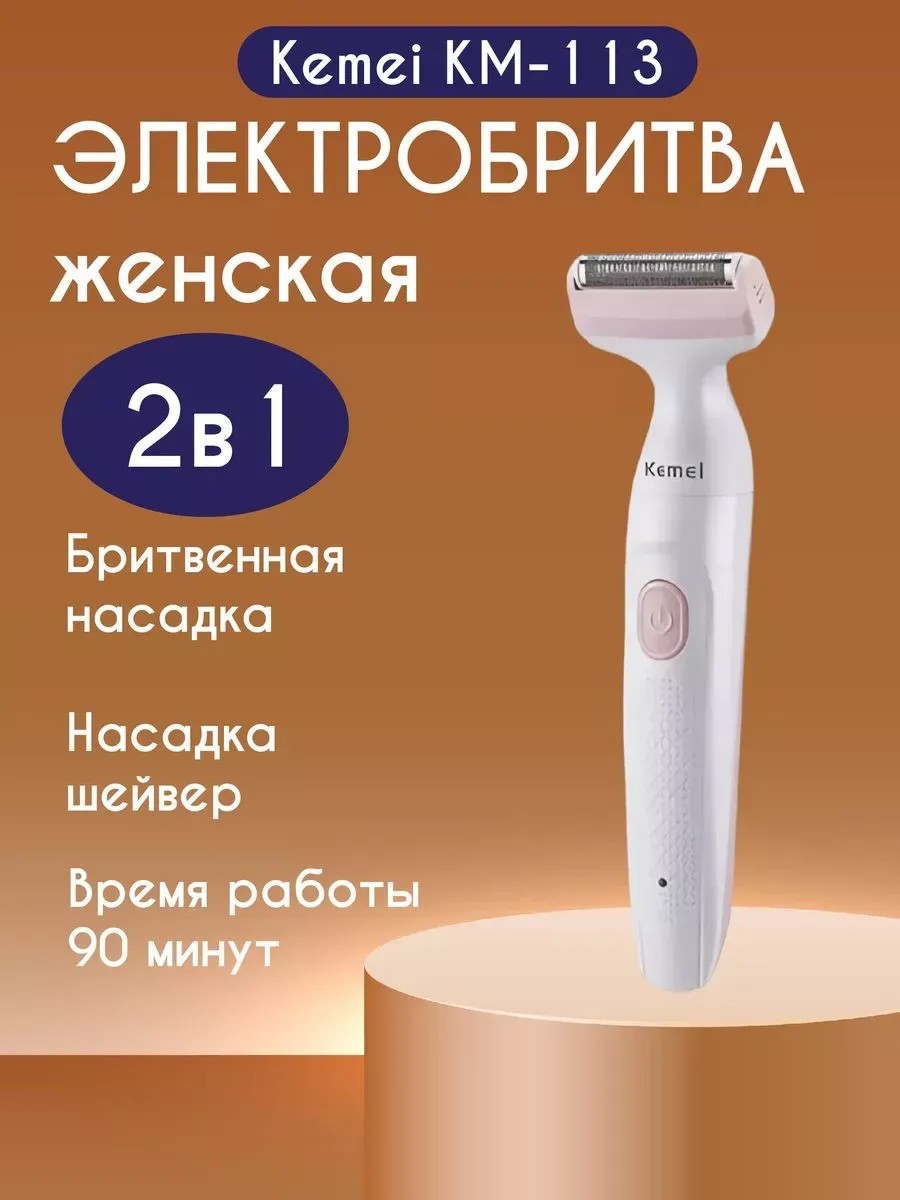 Триммер женский для лица, депилятор женский KEMEI 113 для зоны бикини (интимной зоны) для бровей, носа, тела - позволит вам получить идеальную эпиляцию, удаление волос на теле. Тример можно использовать как электробритву, он компактного размера и удобно лежит в руке. Благодаря набору насадок вы можете удалять волосы в носу, в ушах, в зоне бровей или на любом участке лица и тела. Лезвия выполнены из нержавеющей стали, а корпус из приятного ABS пластика. Корпус влагозащитный, что позволяет использовать портативный тример в ванной. Эпилятор женский с обеспечивает более легкие и точные движения - идеальный выбор для удаления в труднодоступных зонах. В комплекте идет 4 насадки - для стрижки бровей, триммер для носа. Триммер создан для стрижки и окантовки любой зоны тела - носа, ушей, бровей, рук, ног, висков, лица, зоны бикини. Электробритва безопасна для всех типов кожи. Тримера для зоны бикини, этот электротриммер создан по новым технологиям. Наш бритвенный станок можно считать, как набор для бритья женский подарочный, или подарочный набор для волос.