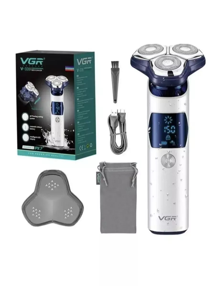 Электробритва V-328 с тремя подвижными бреющими головками обеспечивает идеально гладкое бритье. Компактная водонепроницаемая электробритва со светодиодным дисплеем справляется с волосками в труднодоступных местах. Модуль электробритвы с бреющими головками можно промыть под струей воды. Лезвия изготовлены из качественной нержавеющей стали, что гарантирует высокую прочность и долговечность. Бритва мужская электрическая с триммером работает от встроенного аккумулятора или от сети. Из-за небольшого размера бритву удобно брать в командировку, путешествие. Высокопроизводительный электродвигатель в сочетании с острыми лезвиями обеспечивает быстрый процесс бритья с прекрасным результатом, даже если вы торопитесь и спешите. Электробритва оснащена двигателем мощностью 5 Вт и тремя гибкими ножевыми головками, которые умеют подстраиваться под особенности контуров лица пользователя. Высокопроизводительный двигатель позволяет мгновенно и мягко сбривать бороду, не пропуская ни один волосок. Вес всей бритвы составляет всего 194 г.Она легко поместится в ручную кладь, ее очень удобно брать в поездки.