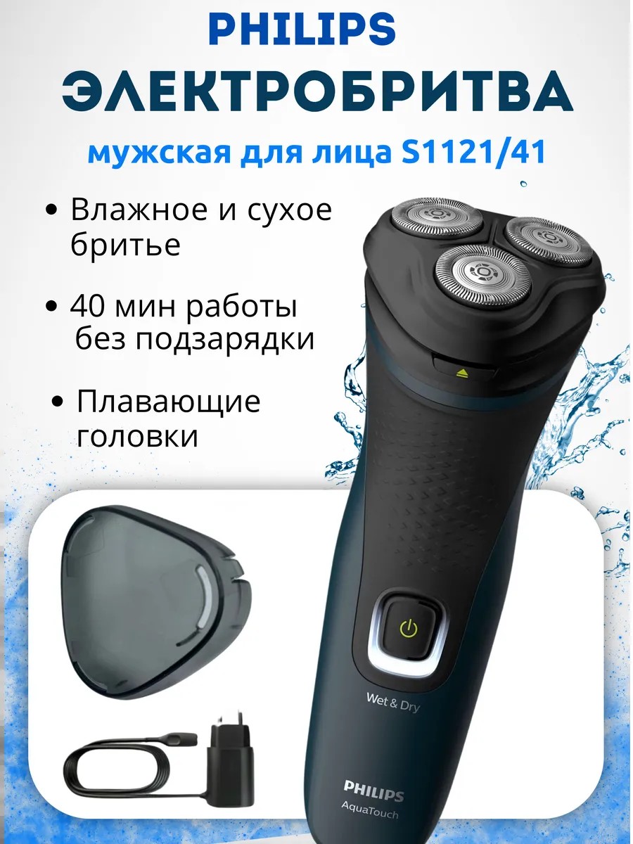 Электробритва Philips S1121/41 - это идеальный выбор для мужчин, ценящих комфорт и эффективность бритья. Модель оснащена тремя бреющими поверхностями, которые обеспечивают гладкое и точное бритье как на сухую, так и на влажную кожу. Благодаря удобному дизайну с корпусом из пластика и резины, бритва удобно лежит в руке, не скользит и обеспечивает полный контроль во время бритья. Philips S1121/41 работает как от аккумулятора, так и от сети, что позволяет использовать ее в любом месте. Время зарядки аккумулятора составляет всего 45 минут, а этого хватает на 45 минут автономной работы. В комплект входит насадка для бритья и насадка для бороды, что делает эту бритву универсальным инструментом для ухода за facial hair.