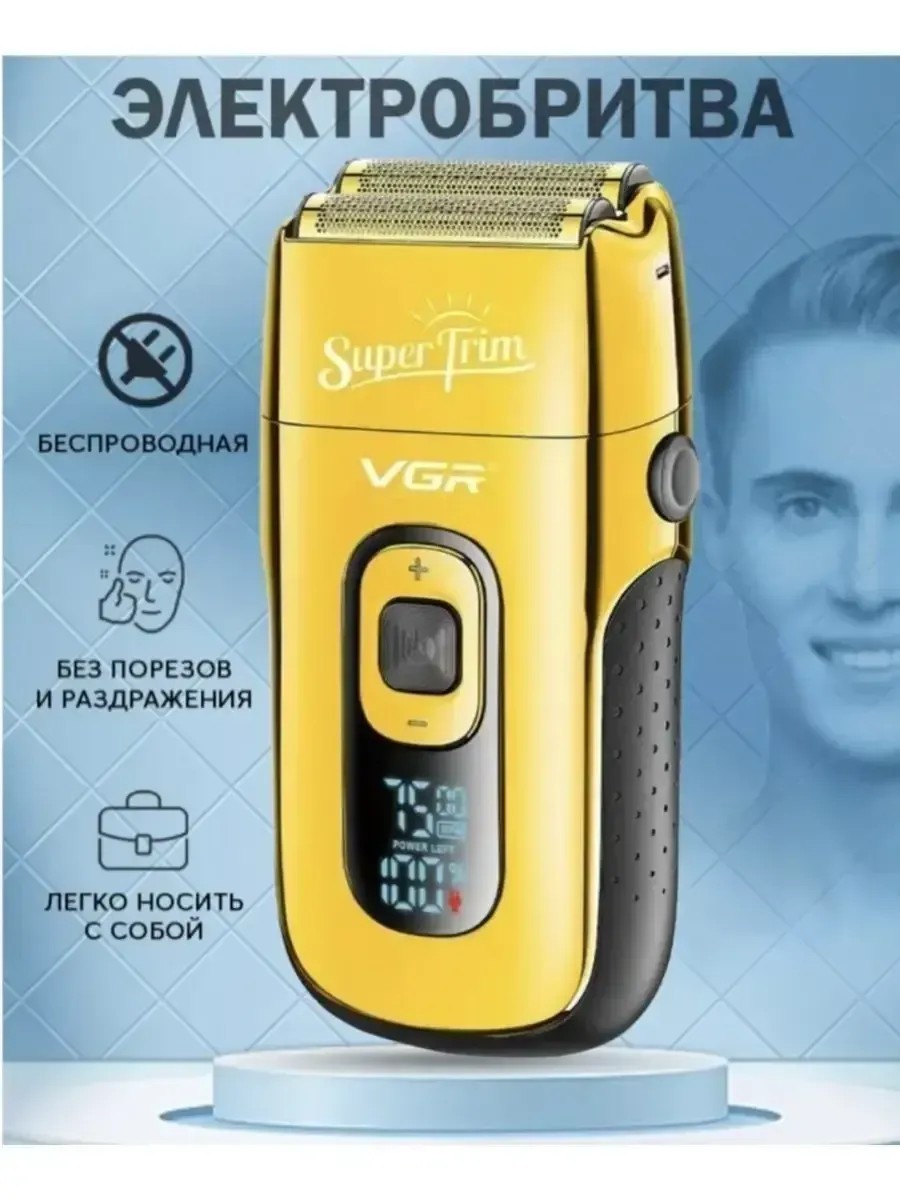 The VGR electric razor is designed for effective hair/stubble removal on the face and body. The waterproof housing of the VGR V-332 razor for men allows you to wash the blades under water, which greatly simplifies the grooming process. More precise shaving with attachments: • floating mesh head with a double stainless steel blade; • retractable shaving attachment; A high-capacity Li-ion battery provides 150 minutes of cordless operation when fully charged. A full battery charge takes only 2 hours. The device has the ability to automatically adapt to the device from which it is charging. You can view the charge level on the LED indicator. The LED display shows shaving speeds and battery charge information. Stylish design, high-quality materials, decent packaging, An excellent option for a gift! It is an analogue of Panasonic.