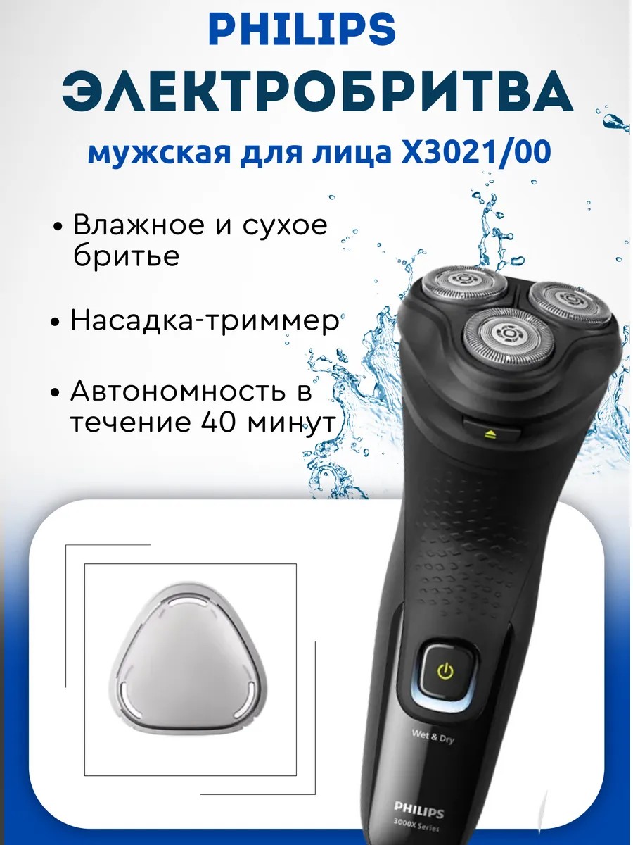 Электробритва Philips X3021/00 оснащена 3D плавающими головками, которые следуют контурам лица, обеспечивая быстрое и безопасное бритье. Водонепроницаемый корпус, защищенный по стандарту IPX7, поддерживает сухое и влажное бритье и комфортно ощущается в руке во время манипуляций.