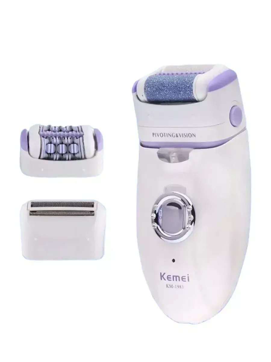 Эпилятор женский KEMEI1981 3 в 1 Эпилятор имеет 3 насадки: основная для качественной эпиляции, бритвенная с двойным лезвием и насадка-пемза для избавления от мозолей, натоптышей, огрубевшей кожи на ступнях, насадка для филировки. Такой эпилятор для зоны бикини заменяет три отдельных устройства.Бритвенная насадка с двойными лезвиями из стали и защитной сеточкой позволит обработать самые нежные интимные зоны, без раздражения и болезненных ощущений. Насадка пемза мягко и быстро удаляет огрубевшую кожу, делая ступни совершенно гладкими. Вращающаяся роликовая головка действует бережно, не требуется распаривания кожи перед использованием. Просто незаменимый прибор в арсенале любой женщины, желающей всегда выглядеть безупречно.• Съемные головки – можно мыть под проточной водой• Скорость: 2• Мощность: 7 Вт• Продолжительность работы: 40 мин• Время зарядки: 10 часов• Длина кабеля: 180 см• Размер: 12,5 х 6 х 3 см• Тип двигателя: перезаряжаемый• Материал: ABC-пластик Kemei один из лучших аналогов известных брендов таких как Philips, Panasonic, Braun, Remington, Moser, Rowenta, Xiaomi, Samsung который не уступает в качестве, по доступной цене. Использование бренда исключительно для поиска