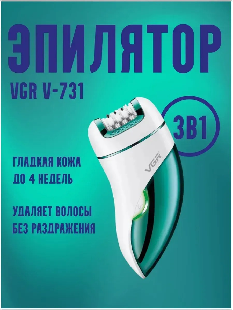 This women's epilator with a built-in battery is the perfect 3-in-1 tool for hair removal anywhere on the body and foot cleansing. This device from VGR features 18 tweezers and helps remove unwanted hair from sensitive areas like the face, underarms, bikini area, and genital area for up to 4 weeks. This versatile appliance comes with a razor, a gentle foot cleansing attachment, and a power cord. This epilator, along with other attachments, will help reduce future hair growth and eliminate it permanently. This cordless, handheld device easily replaces traditional razors and expensive photoepilation and electrolysis treatments at salons. Thanks to its built-in battery, you can use the device without a charging cord anywhere, at home or on the go. It has a battery life of up to 90 minutes. This lightweight and portable device fits easily in a purse or backpack, allowing you to use it anytime, anywhere. The device is powered by a built-in battery, providing continuous operation without needing to recharge. The trimmer with a built-in battery helps remove ingrown hairs and stubble, while the waterproof epilator head allows for comfortable use in the bath or shower. This set makes a wonderful gift for any woman who values the health and beauty of her body. The epilator will remove unwanted hair anywhere on the body quickly and effectively. A special heel attachment helps remove dead skin and provides a pleasant massage effect. The epilator is an effective everyday grooming product for both men and women, helping remove hair and keep skin smooth and soft for a long time. This professional device with three functions is a perfect gift for a beloved mother, friend, or sister.