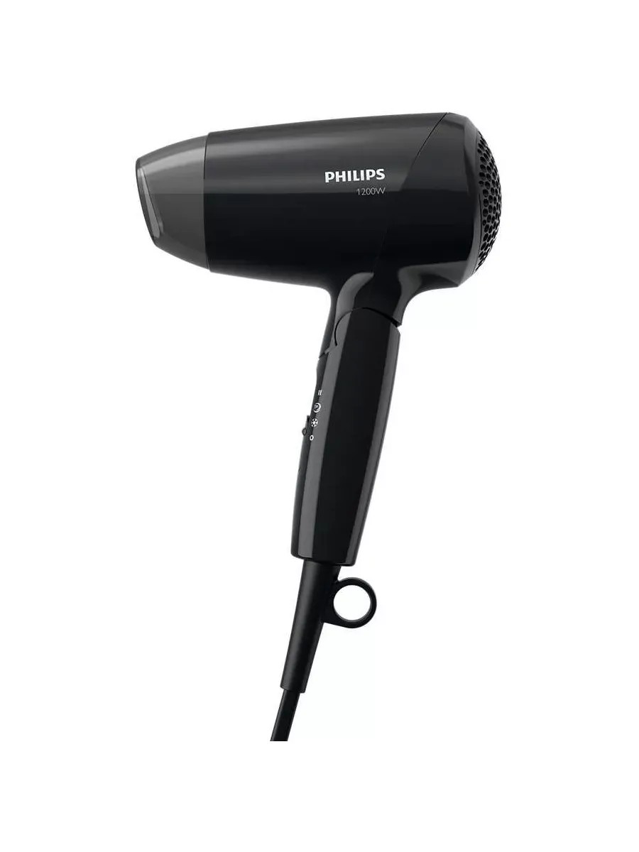 Philips BHC010/10 hair dryer, black, 1200W, 1 attachment. The new Philips Essential Care hair dryer features a beautiful compact design and high power, allowing you to dry your hair quickly and gently. It features convenient settings designed for various occasions and provides additional hair protection.