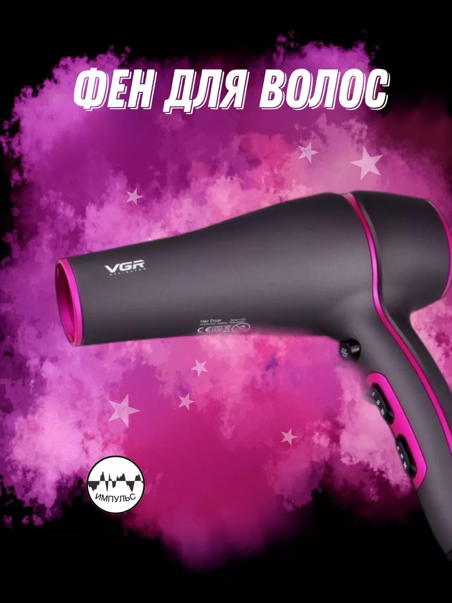 Фен для волос профессиональный VGR407 , с отрицательными ионами ( отрицательно заряженные ионы защищают от воздействия горячего воздуха). Так же фен для волос, имеет интеллектуальную система контроля температуры, фен автоматически перестанет работать, когда температура превышает лимит. Необходимость фена чувствует практически каждый. Особенно часто он необходим представительницам прекрасного пола: ни одну прическу невозможно выполнить без укладки. А чтобы волосы оставались безупречными и не пересушивались под воздействием горячего воздуха, лучше использовать фен с ионизацией. Такая дополнительная функция в устройстве позволит правильно ухаживать за шевелюрой. Фен с ионизацией отличается от обычного наличием специального напыления на решетке, откуда идет поток горячего воздуха. В процессе работы фена происходит нагревание решетки, при этом с покрытия высвобождаются ионы, кондиционирующие волосяной покров. За счет дополнительного турмалинового покрытия происходит также равномерное распределение температуры горячего воздуха, что приводит к более безопасной эффективной сушке. Даже дорогой мощный фен для волос, имеющий несколько скоростей и функцию холодного обдува, не способен защитить волосы от повреждения. Безупречно выполненная укладка превратится в недоразумение, если волосяные волокна сильно наэлектризованные и пушатся. Увеличивают статическое напряжение не только погодные условия, но и головные уборы или украшения. Дополнительная функция ионизации в фене позволит избежать таких проблем. Благодаря этой возможности и процесс сушки происходит быстрее, так как под действием ионов капельки влаги быстрее впитываются в волосы, удерживания в норме водный баланс. Использование бренда исключительно для поиска