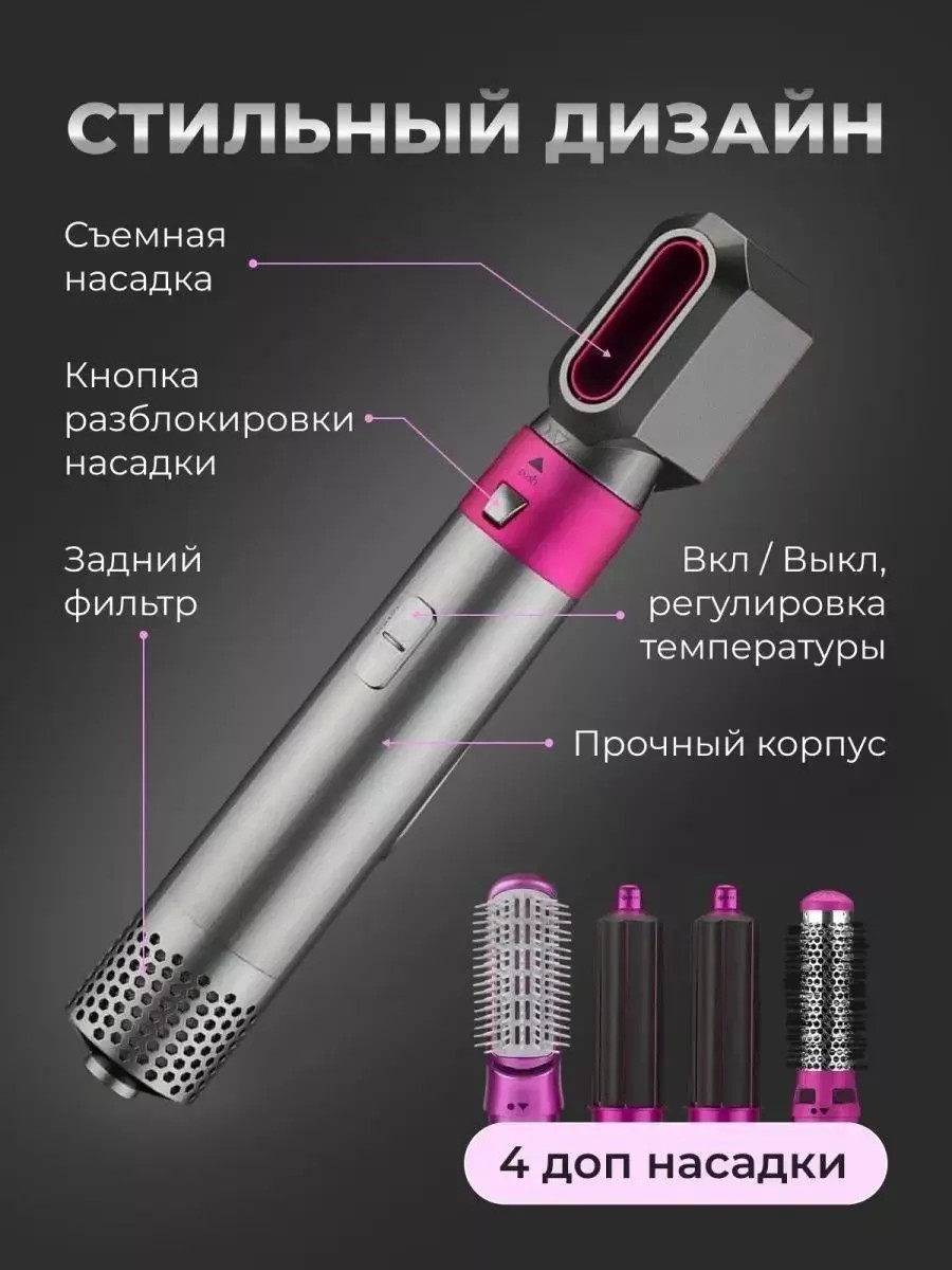 Мультистайлер для волос в 5 в 1 прекрасно выполняет функцию сушки и профессиональной укладки волос. В комплекте к фен стайлеру в кейсе имеется пять насадок - утюжок выпрямитель, щипцы для завивки кудрей, щетка расческа, брашинг и насадка для сушки волос. Стайлер 5 в 1 можно использовать как обычный фен с ионизацией. Благодаря ионизации Ваши волосы покрываются ионами, обеспечивающие защиту от негативного внешнего воздействия. Наша плойка с насадками создана для красоты и здоровья ваших локонов. Тройная плойка для волос производит идеальное выпрямление, позволяет завить локоны и создать самые лучшие прически. Три температурных режима, с помощью которых Вы сможете подобрать для себя наиболее подходящий вариант. В стайлере для укладки волос используется аэродинамическое явление, известное как эффект Коанда. Отличный подарок на 23 Февраля 14 Февраля День всех влюбленных день святого Валентина 8 Марта
