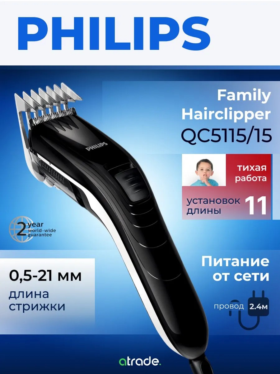 Машинка для стрижки волос Philips QC5115 (QC5115/15) — идеальный инструмент для создания стильных причесок у вас дома! Профессиональная электрическая машинка станет незаменимым помощником для мужчин и женщин, обеспечивая легкость и комфорт в процессе стрижки. С Philips QC5115/15 вы сможете подровнять волосы, бороду, сделать стрижку для детей, включая новорожденных малышей.