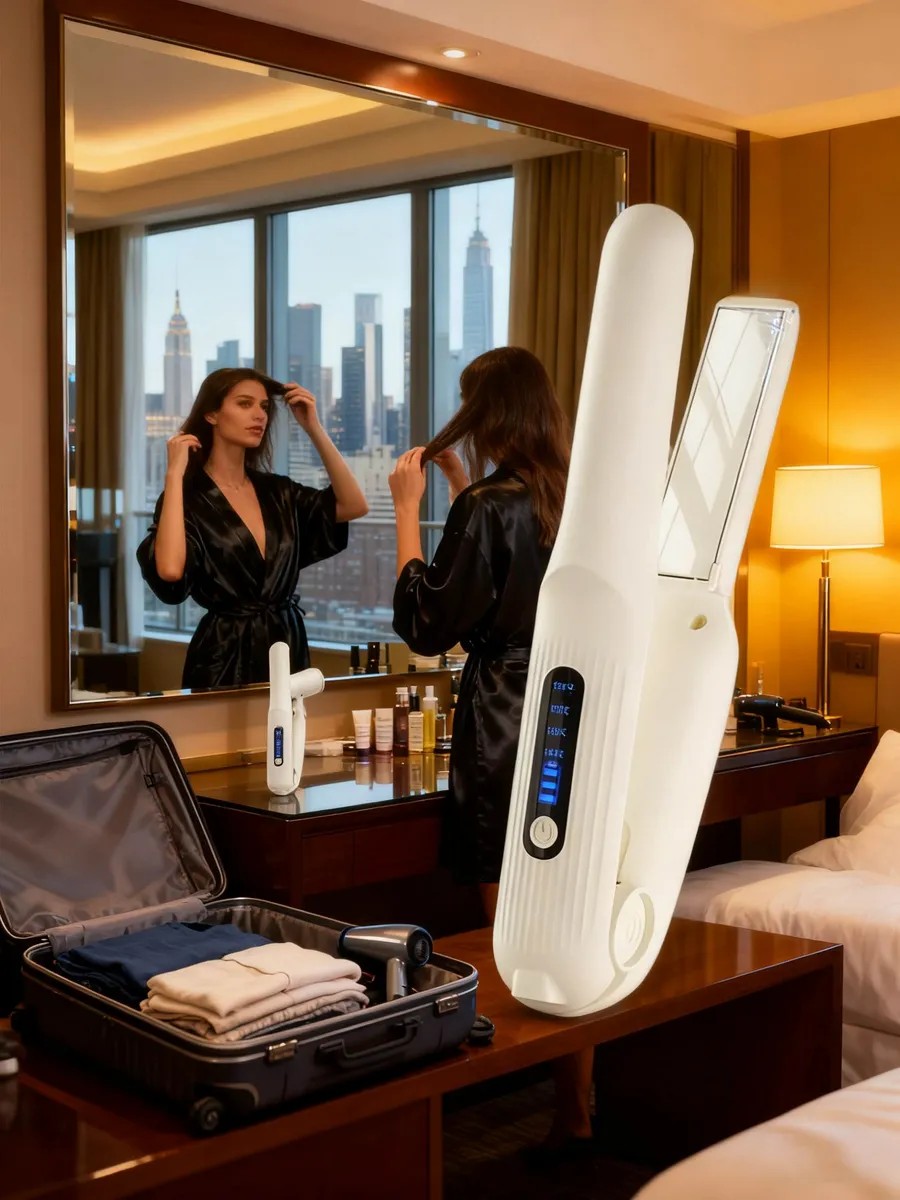 Этот элегантный белый утюжок сочетает мощность 3.7V/37W и аккумулятор 4000mAh, обеспечивая до 40 минут беспроводной работы — идеально для путешествий и быстрых укладок! Устройство оснащено LED-дисплеем для контроля температуры, адаптированной под разные типы волос. Керамические пластины с турмалиновым покрытием и пропиткой эфирным маслом устраняют статическое электричество, придавая волосам гладкость и блеск.