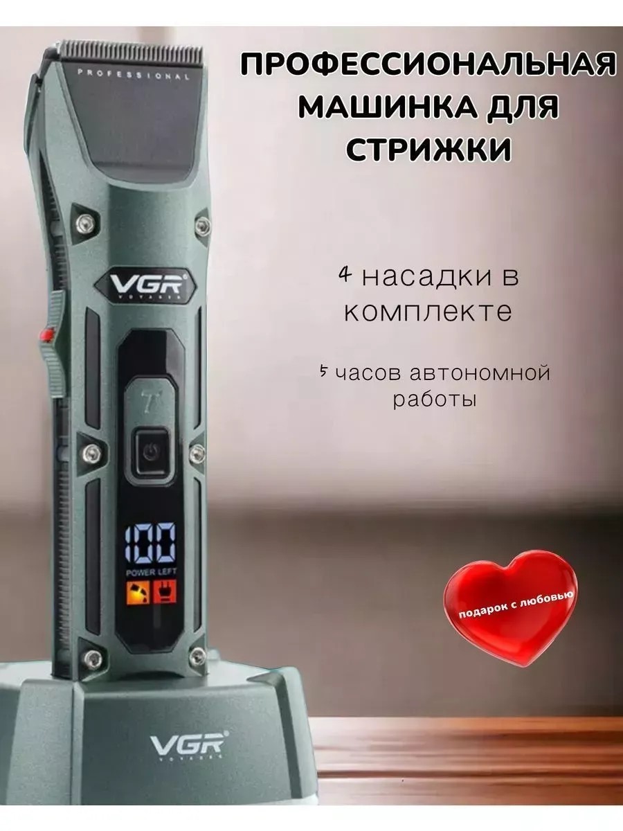 Профессиональная машинка для стрижки волос VGR696. Мощный роторный двигатель с увеличенным крутящим моментом, имеет профессиональные ножи из нержавеющей стали. Отличаются своей твердостью и долговечностью, что позволяет машинке справляться с самыми густыми и жесткими волосами. Профессиональная машинка оснащена инновационным встроенным Li-Ion аккумулятором 2500 mAh. Вы можете выполнять стрижки как автономно, так и от сети. Отлично подходит для парикмахерской или домашнего использования. Led дисплей показывает уровень заряда аккумулятора. 2 скорости мотора. Характеристики: Бренд: VGR; Регулировка скорости моторчика: 2 варианта; LED дисплей: показывает уровень зарядки; Машинка для стрижки волос прекрасный подарок на день рождения, 23 февраля и другие праздники. Выбирая бытовую технику, вы выбираете легкость в работе, отсутствие необходимости посещать салон для мужчин. Данная машинка станет отличным подарком на 14 февраля.Профессиональная машинка для стрижки волос VGR V-696 лучший аналог машинок для стрижки известного бренда Moser.