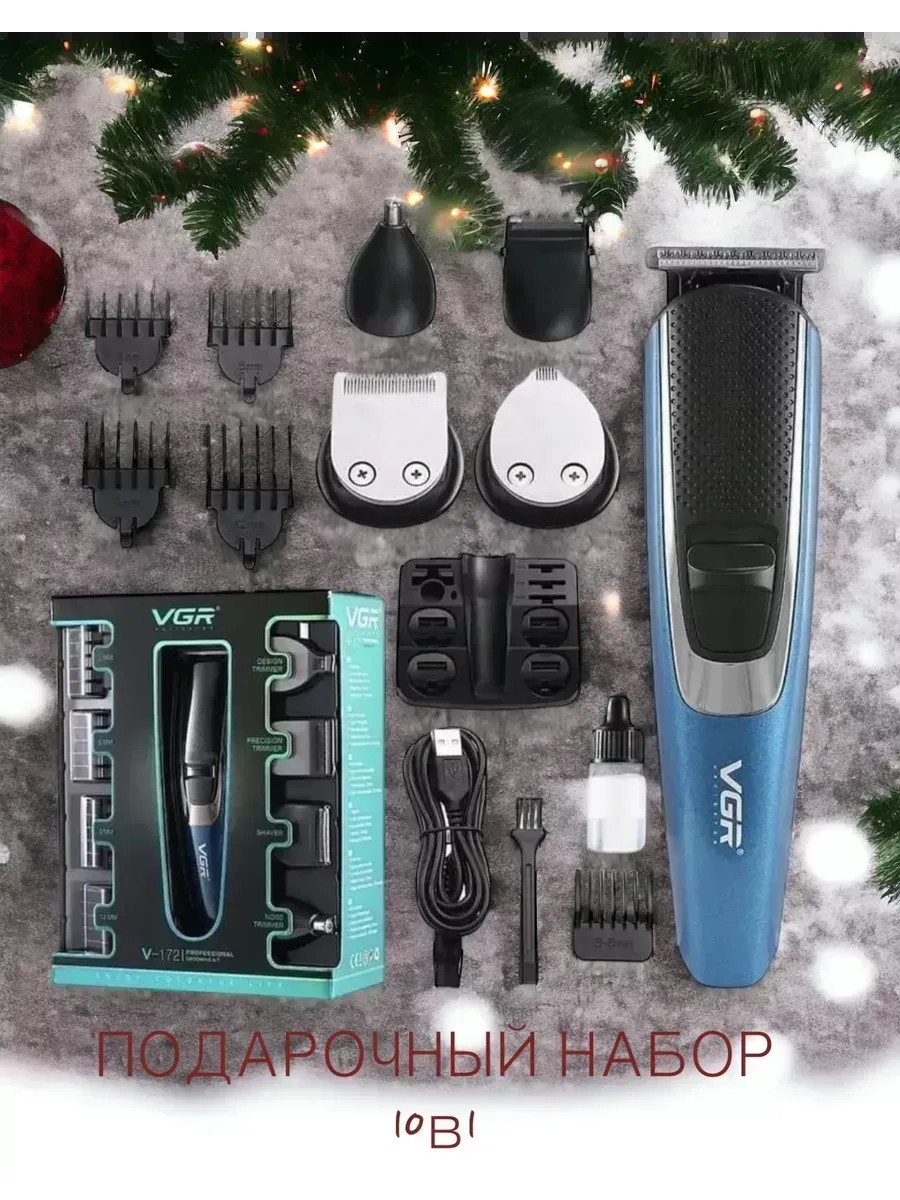 Качественная машинка для стрижки волос взрослых и детей является незаменимым электронным предметом для гигиены, здоровья и красоты. Многофункциональная машинка 10 в 1 VGR идеально подойдет для домашнего и профессионального использования. Эта модель имеет полный набор аксессуаров, включает в себя насадки для удаления волос на лице, ушах, носу и с других мест, бритвы для окантовки бровей и бороды, а также для моделирования длинных и коротких причесок. Благодаря универсальным насадкам, прибор подходит как для женщин и мужчин, а также для подростков и детей. Подстригательная машинка - это качественная бытовая техника с профессиональным уровнем работы. Острые лезвия из нержавеющей стали и двигатель с литиевым аккумулятором обеспечивают чистку и удаление волос, делают гладкой любую поверхность. Стильный дизайн в черном и синем цвете придает прибору особый внешний вид. Такой ручной аппарат найдет применение среди инструментов парикмахера.,поможет удалить волосы в любой зоне всего за несколько минут. Эргономичная ручка обеспечивает комфортное использование во время работы. Многофункциональная машинка легко удаляет волосы без боли и дискомфорта, а благодаря защите устройства, можно быть уверенным в ее безопасности. В комплект входит специальная зарядная станция для хранения насадок, что делает прибор идеальным подарочным вариантом для любимого человека. Универсальная машинка поможет сделать любую мужскую, женскую, детскую стрижку без труда. Электрический прибор для стрижки волос поможет легко убрать кончики волос и моделировать прически.Это прекрасная находка для домашнего использования или работы в парикмахерской или в барбершопе.VGR один из лучших аналогов известных брендов таких как Philips, Panasonic, Braun, Remington, Moser, Rowenta, Xiaomi, Samsung который не уступает в качестве, по доступной цене. Использование бренда исключительно для поиска.
