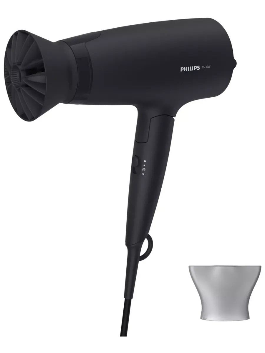 This hair dryer has 3 preset speed/heat settings, making it quick and easy to create the perfect hairstyle.Technical data:ThermoProtect nozzle with a unique design mixes warm and cool air for gentle drying of hair.14 mm concentrator nozzle.Folding handle.Temperature/speed settings: 3.Cool shot mode.Storage loop.Power: 1600 W.Motor: DC.Voltage: 220-240 V.Cord length: 1.8 m.