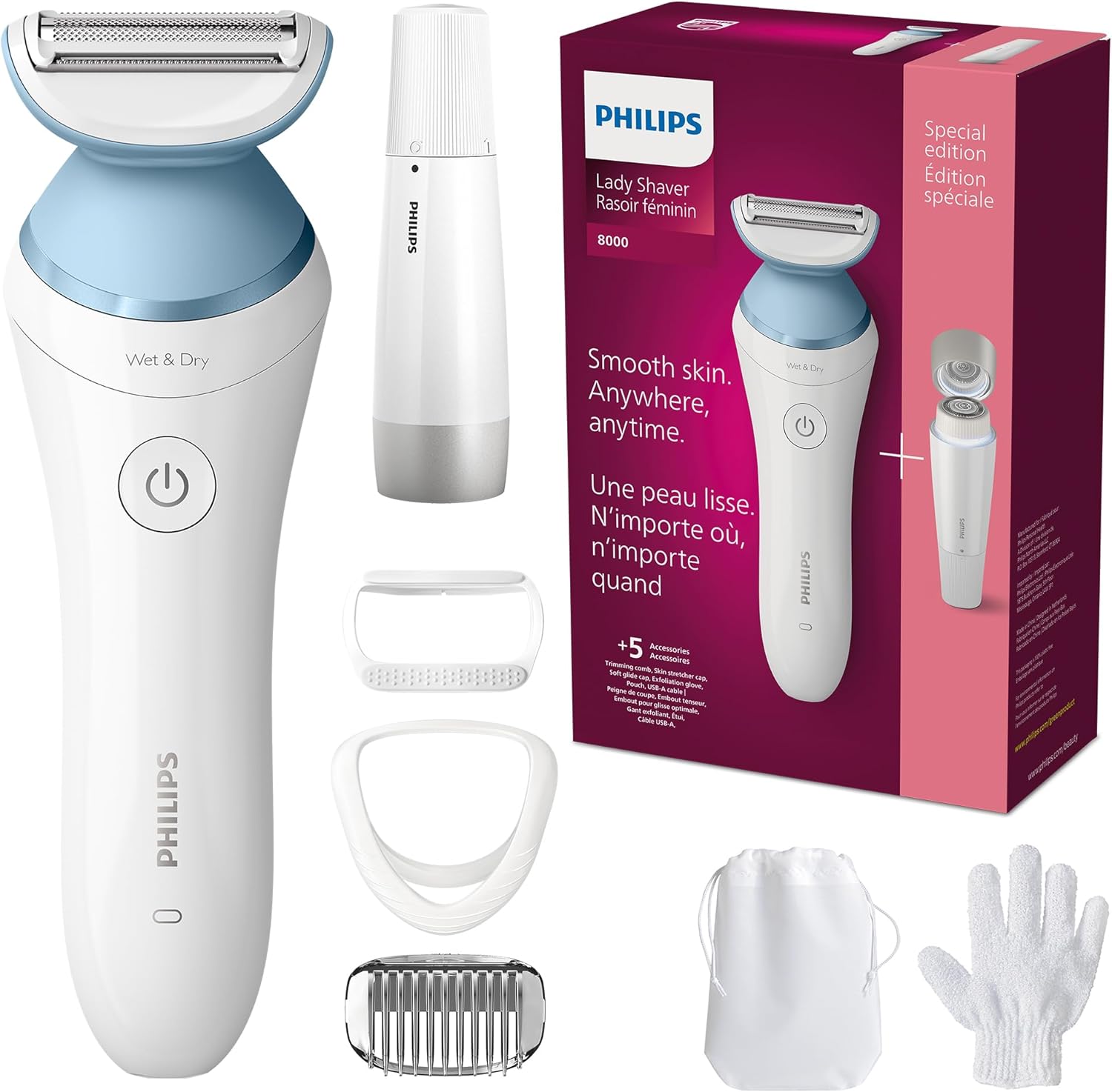 • Philips Lady Shaver Series 8000 with Facial Hair Remover bundle is a complete hair removal solution for body and face