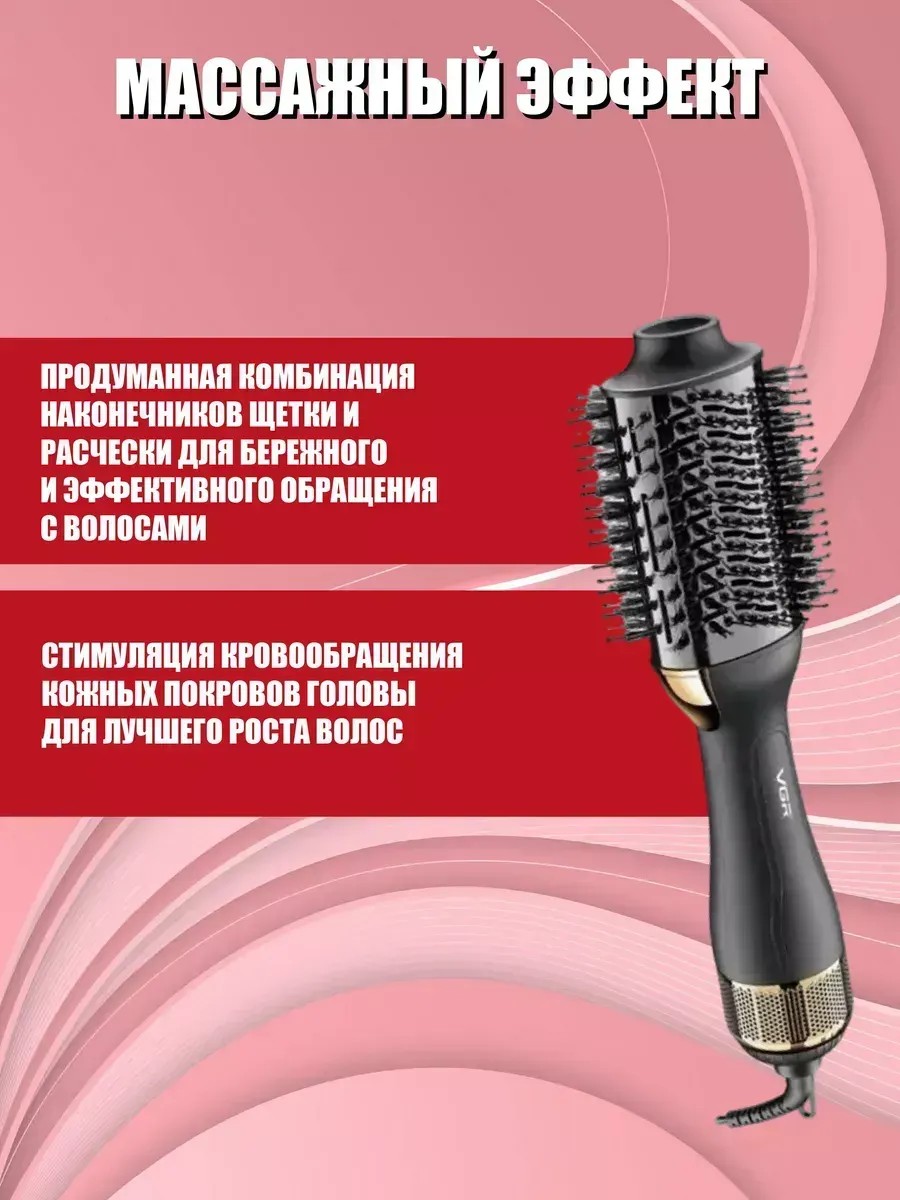 Создайте идеальные прически с многофункциональной термощеткой, которая станет вашим незаменимым помощником в мире укладок. С мощностью 1000 Вт и тремя режимами работы, эта электрощетка подходит для любого типа волос. Нужен холодный режим для фиксации укладки? Или горячий для бережной сушки? Выбор за вами. Широкая рабочая поверхность и комбинированные щетинки позволяют эффективно укладывать волосы разной длины и текстуры. Уникальная конструкция воздуховодов обеспечивает равномерный поток воздуха на 360°, что значительно ускоряет процесс сушки и укладки. Встроенный ионизатор борется со статическим электричеством, придавая волосам здоровый блеск. Корпус, выполненный из термоустойчивого материала, гарантирует безопасность использования. Длина провода 1,9 метра с поворотным механизмом предотвращает запутывание и обеспечивает комфорт в работе. Удобное ушко для подвешивания позволяет хранить термощётку в любом месте. Подходит как для домашнего использования, так и для профессиональных стилистов, она поможет создать стильные образы на каждый день и для особых случаев. Пора сделать свою укладку легкой и приятной с этой многофункциональной термощеткой.