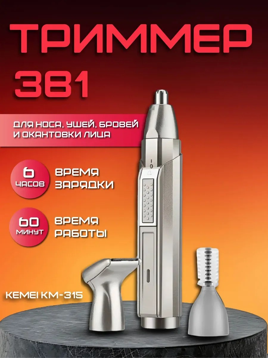 Триммер KM-315 — это универсальное устройство 3 в 1, которое идеально подходит для ухода за волосами в носу, ушах и бровях, а также для стрижки.